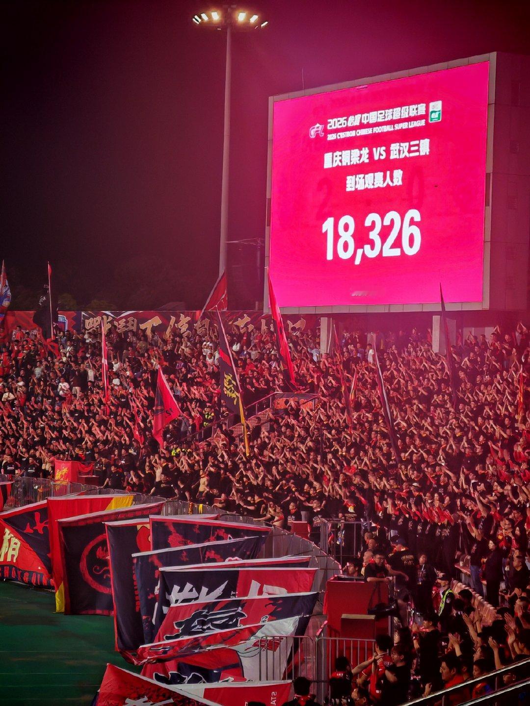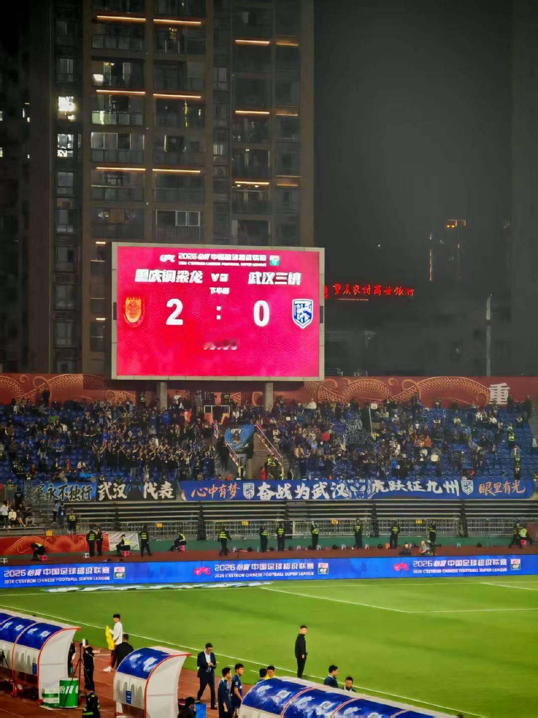 重庆这现场挺嗨的,开头的字幕也很让人感动,“长江德比”友谊万岁!