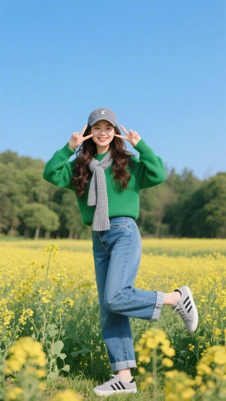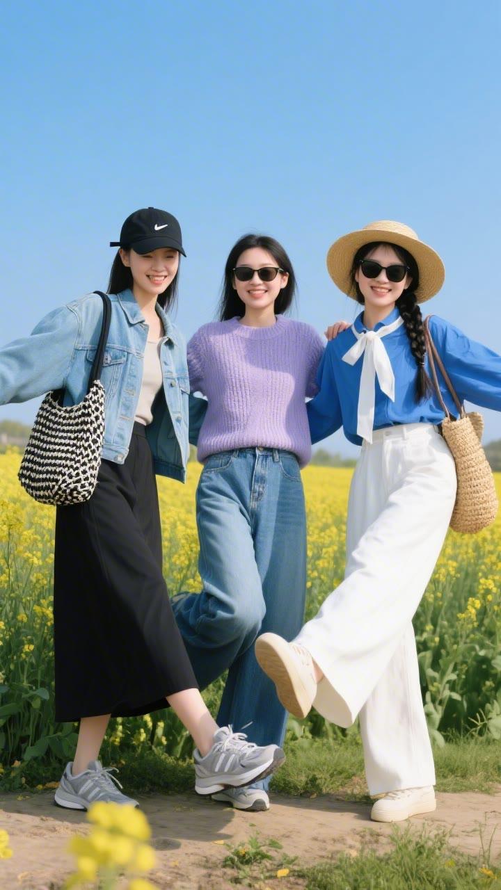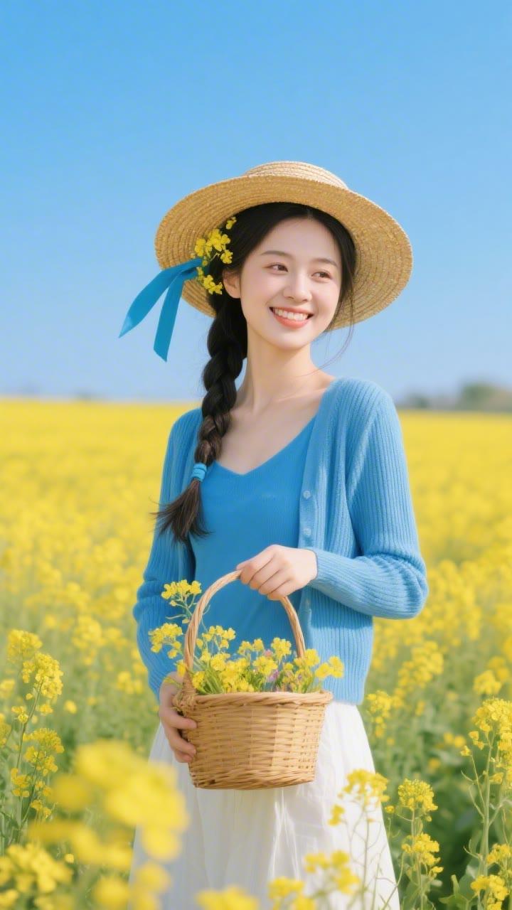 春日野餐,粉裙少女与花海相映成趣🌸🌼