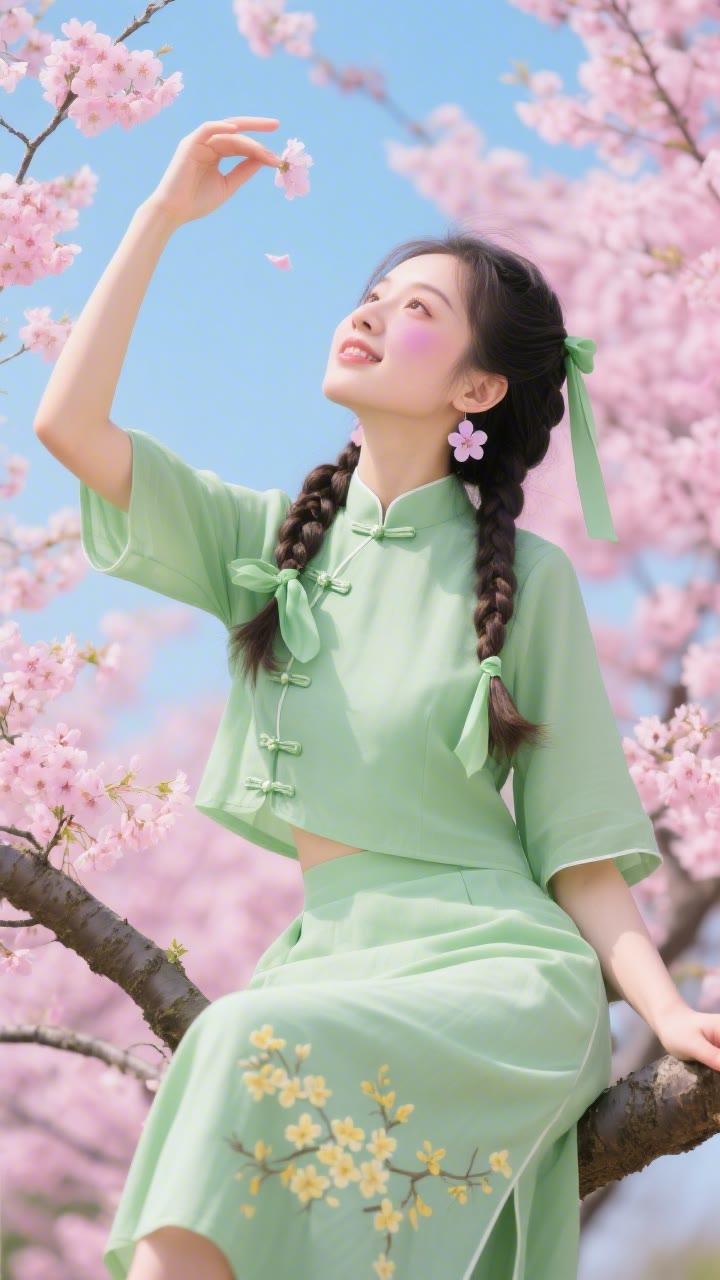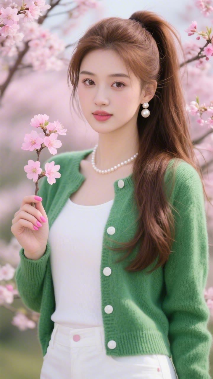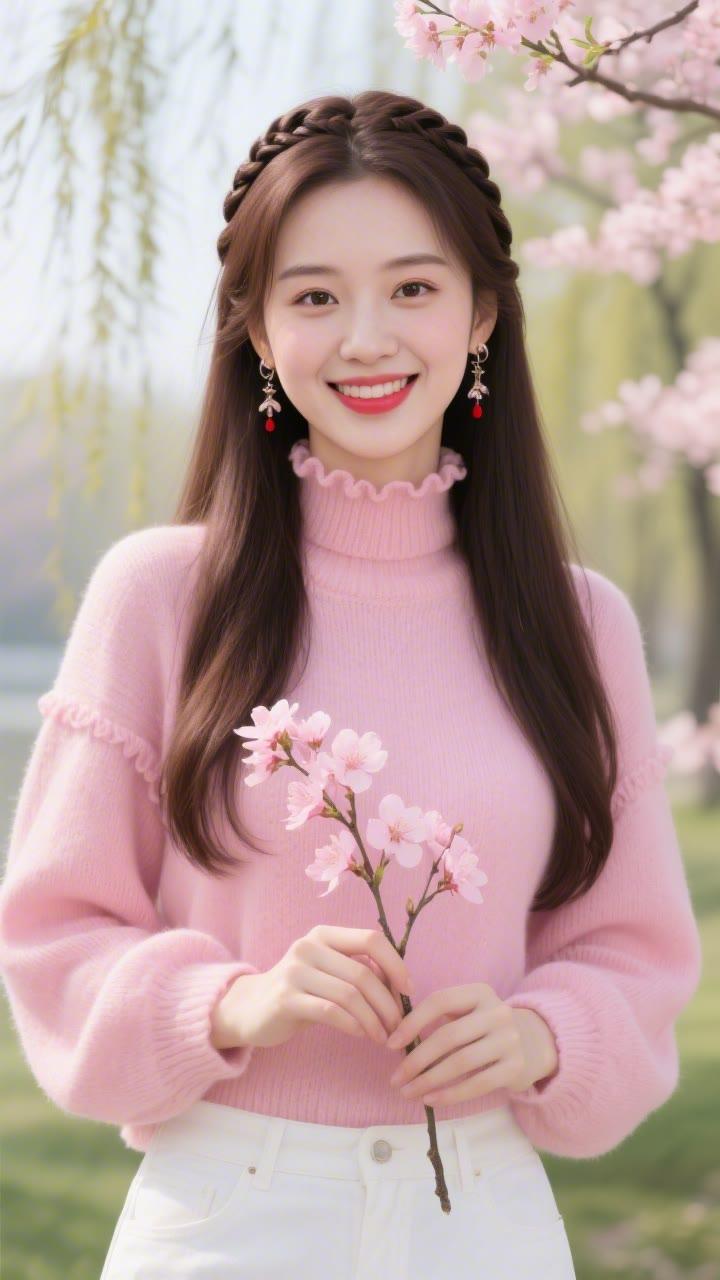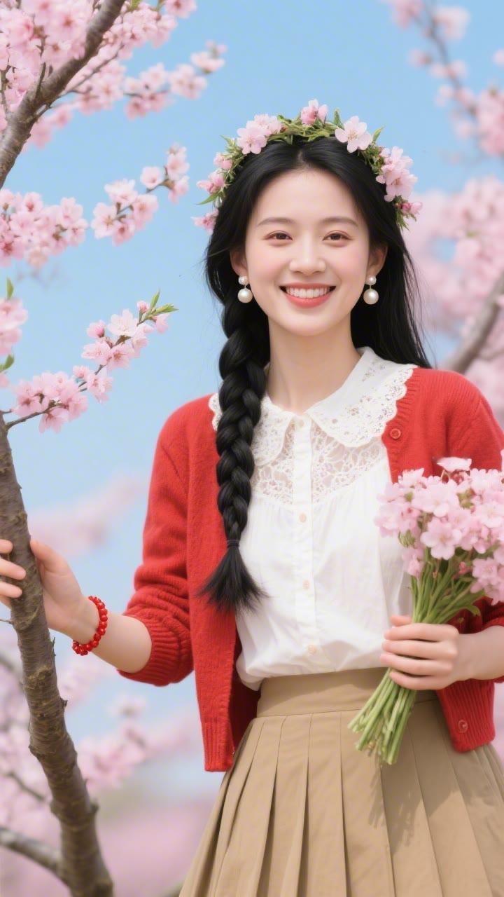 春日野餐,粉裙少女与花海相映成趣🌸🌼