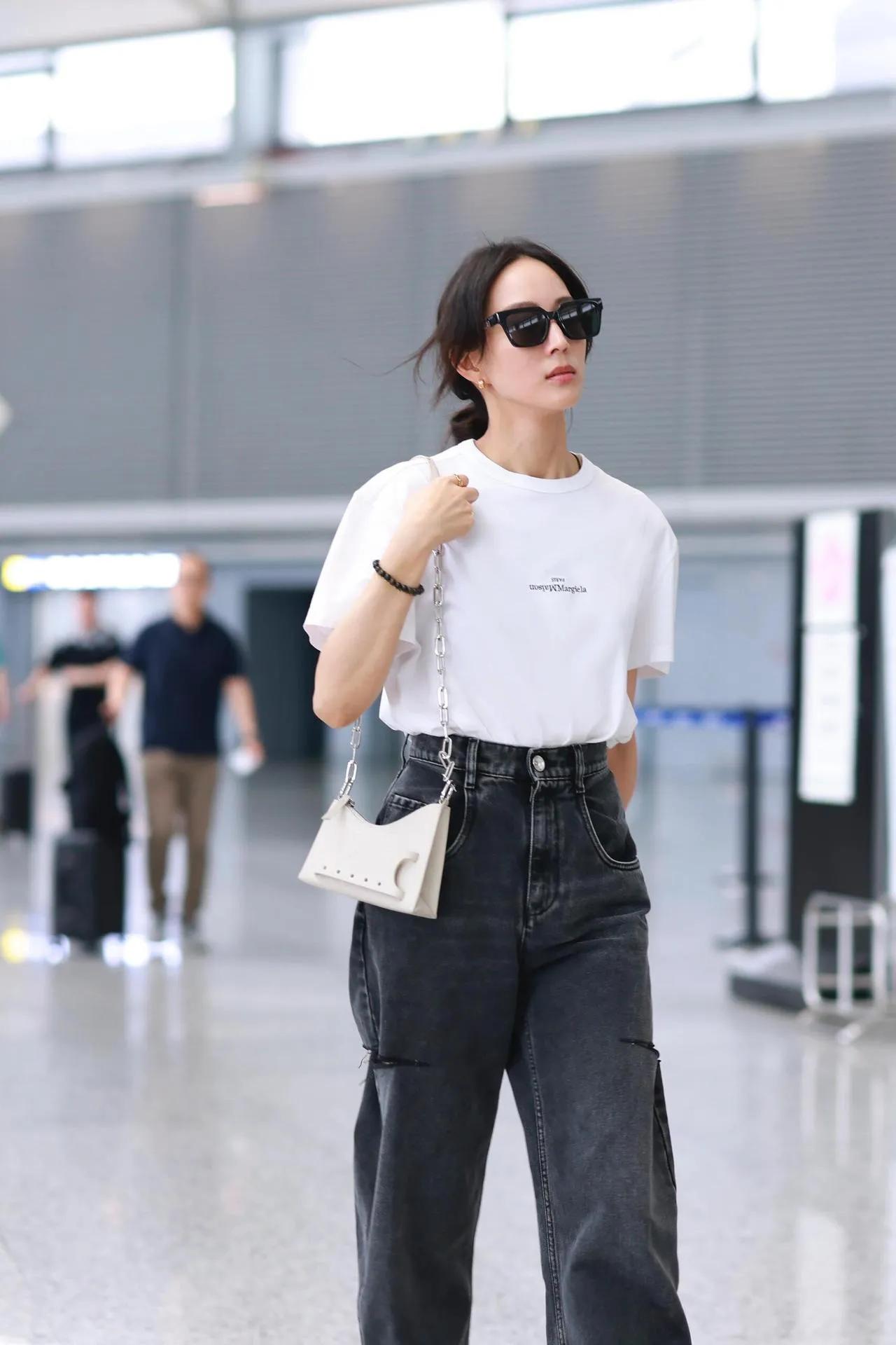 张钧甯机场私服封神! 白T恤+牛仔裤,简约随性又高级, 松弛感拉满,直接抄作业!