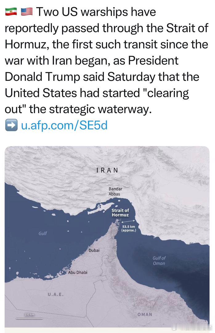 谈判的同时,两艘美国军舰通过霍尔木兹海峡,开战来首次