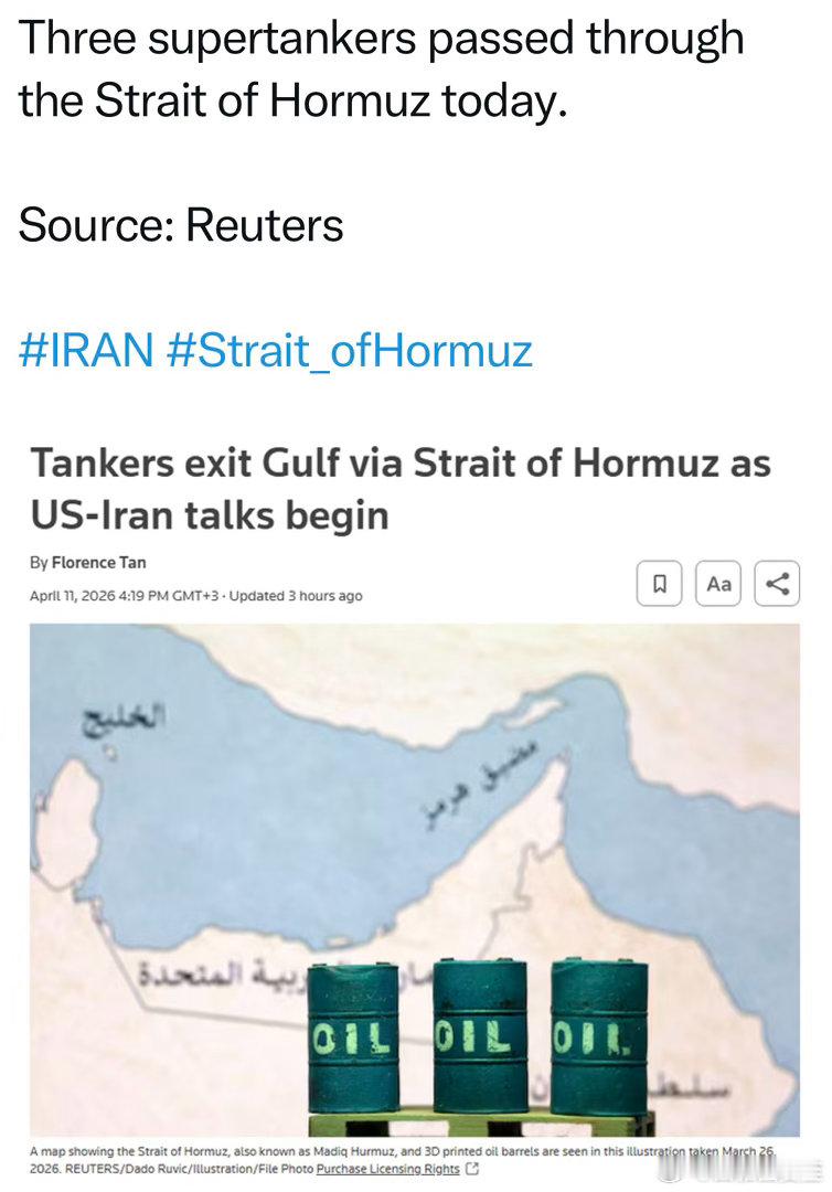霍尔木兹海峡的问题,必须尽快解决(“停火”以来,伊朗只放行了三艘超大型油轮)