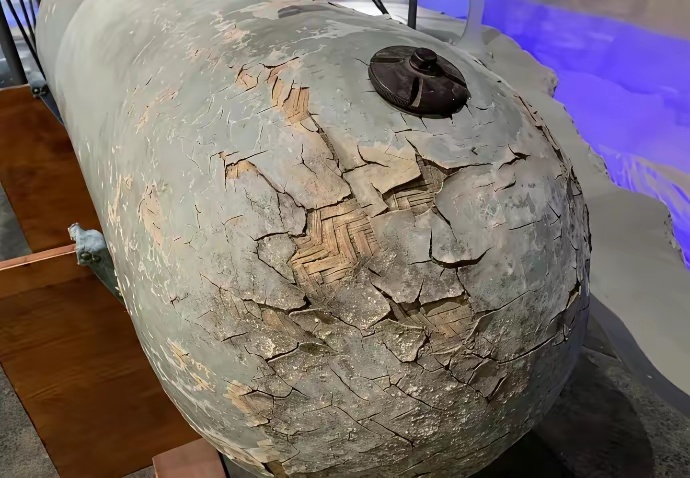 二战时期用竹子编的飞机副油箱,鬼子投降之前由于物资匮乏的产物。铭记历史