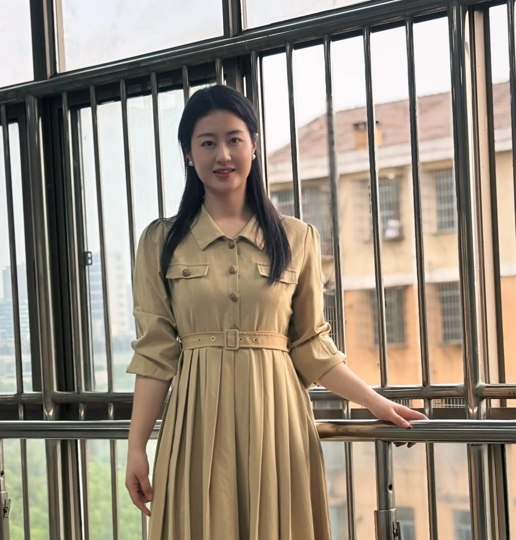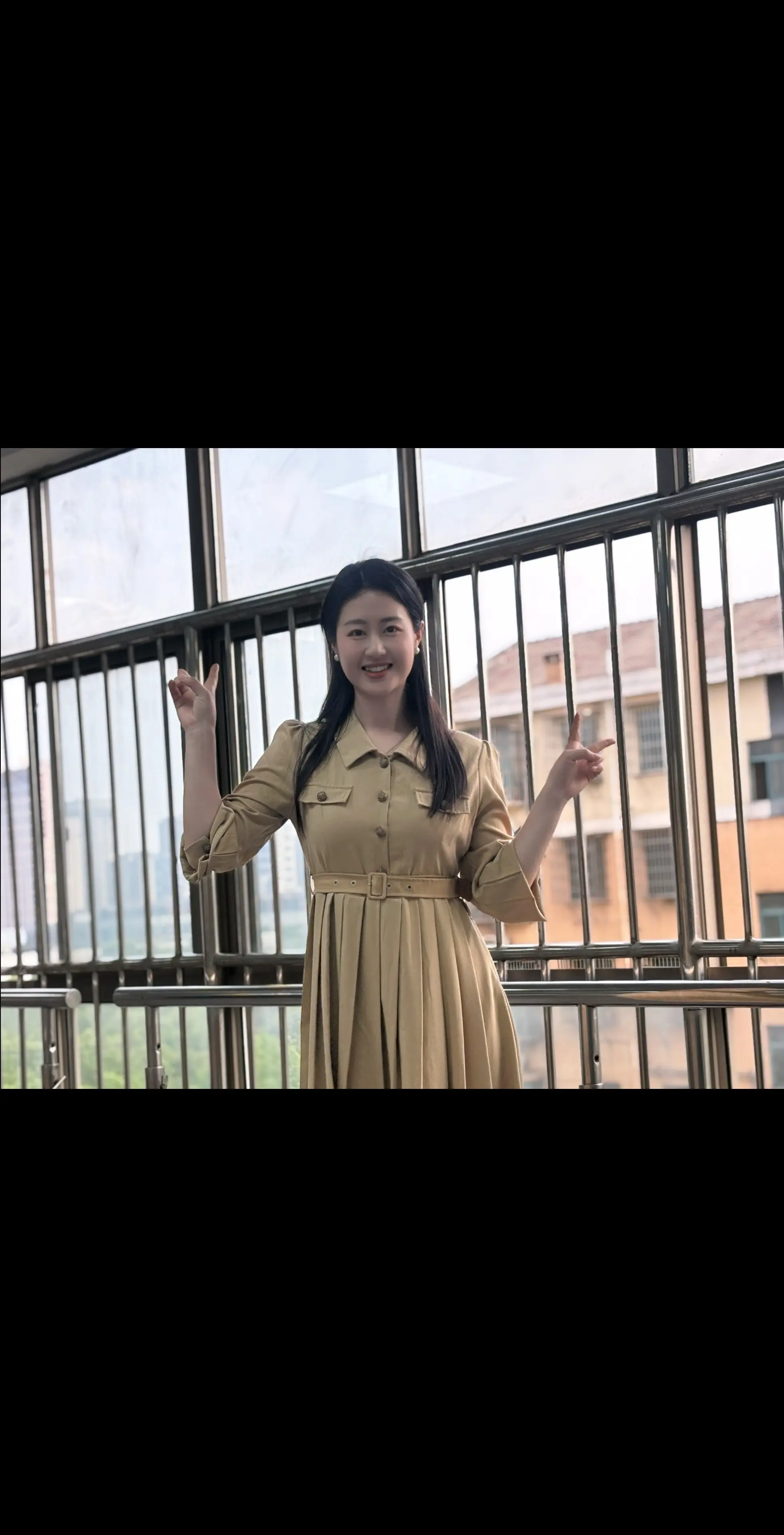 一年级学生拍的,乡村教师土味穿搭即视感😄,但我很喜欢我自己诶,嘻嘻嘻😬
