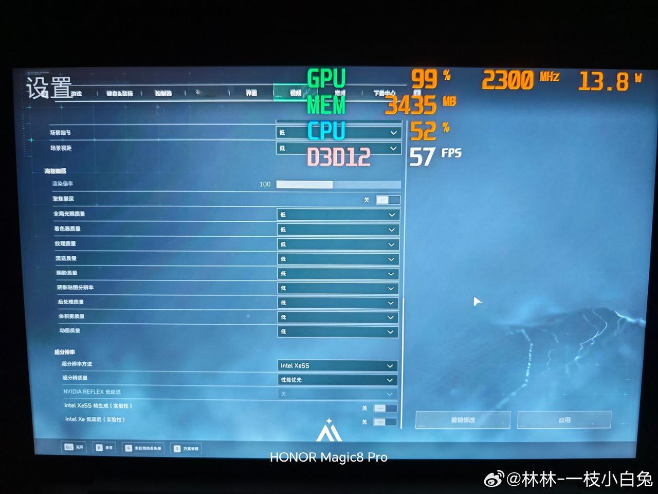 三角洲热度蛮高的,很多小伙伴选择笔记本电脑的时候倾向于电竞款,其实荣耀新品轻薄款同样可以运行蛮流畅,刚刚看到荣耀林总分享,荣耀MagicBook 14 336H版本,1920x1200分辨率低画质的情况下,启用Intel XeSS性能优先的情况下,三角洲60~80FPS还是蛮流畅的,新品处理器的集显还是靠谱 畅聊数码新品 数码资讯