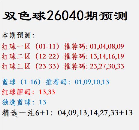 双色球26040期预测