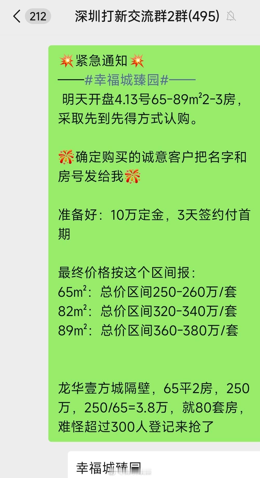 明天龙华壹方天地隔壁又要抢房了.....因为3.8万的价格,总价250万。 深圳
