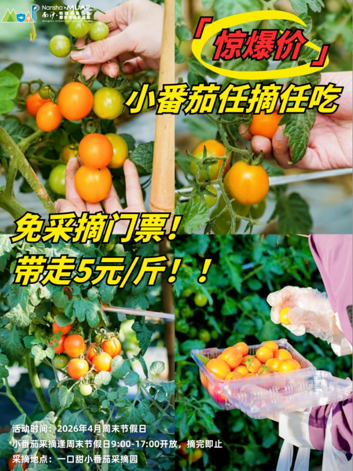 【小番茄中的爱马仕香芒皇后采摘5元一斤】明珠农业园又有着数来了!号称小番茄中的爱马仕香芒皇后4月份周末节假日开放免门票采摘,摘好带走仅需5元一斤!摘满3斤还送桑葚的采摘门票。