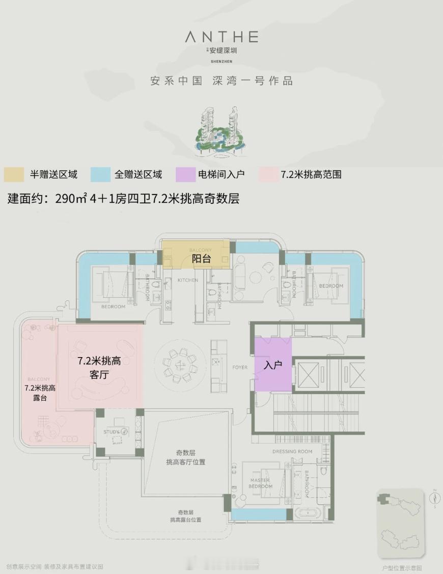 这次专门设计了7.2米挑空错层,这个靠市场需求和设计创新弄出来的,最大化居住空间体验。 深圳