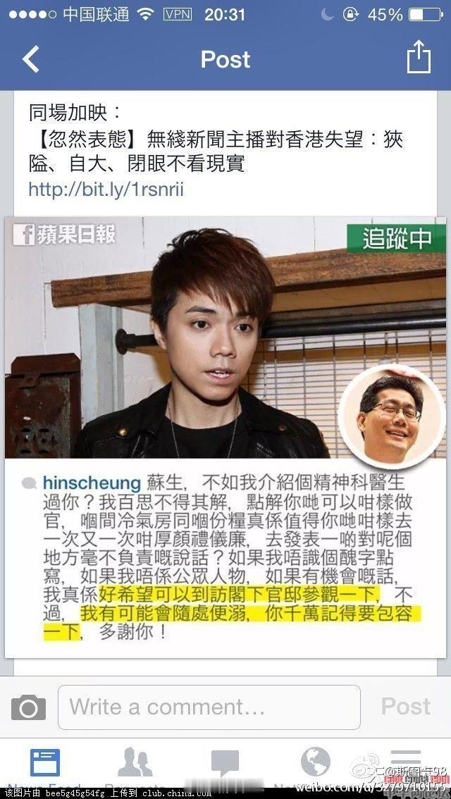 歌手张敬轩就昔日言行道歉 一个祖籍北京,在广州出生长大的人,过去的言行是年轻无知?帮他回忆下,这些可都是他30岁以后的言行。图1,支持台独的太阳花运动,图2、内地小孩便溺路边引发事件后,香港官员呼吁宽容,张发帖称:你叫我包容,那我去你家撒尿阿,一副无赖嘴脸;图3、不多说,自己看,就是那套港毒言论图4、伸臂暗示支持反国民教育图5、被他爹训斥后张自宫的一条支持反国民教育帖子图6、领唱支持占中歌曲