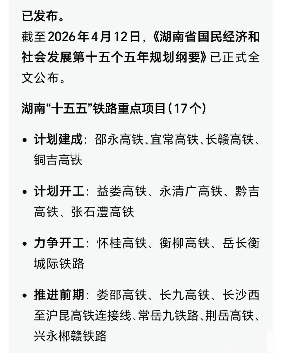 湖南正以三梯次铁路布局重塑交通格局,构建高效联通的现代化路网。第一梯队(必建/建成)含邵永、宜常、长赣、铜吉铁路,总投资超1500亿元,已开工或年内落地,是国家“八纵八横”骨干通道的关键补段。第二梯队(在建/推进)覆盖益娄、永清广、黔吉等7条线路,2026—2028年分批开工,形成多点衔接的区域网。第三梯队(研究/待建)含娄邵改造、岳长衡城际等,为中长期战略储备。