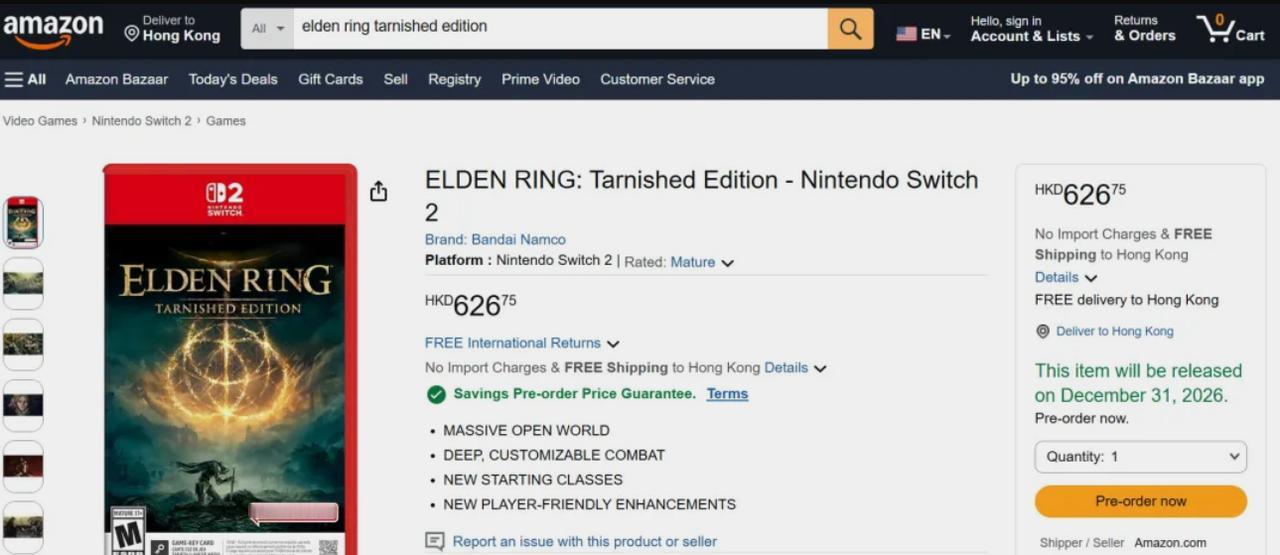 【真有你的FS社!老头环冷饭卖80美刀】switch2游戏又因为售价问题被吐槽了!近日,亚马逊上架了《艾尔登法环:褪色者版》的Switch 2预售页面。 《褪色者版》包含游戏本体和2024年发售的DLC《黄金树幽影》,以及四套铠甲外观和灵马托雷特的三款皮肤。