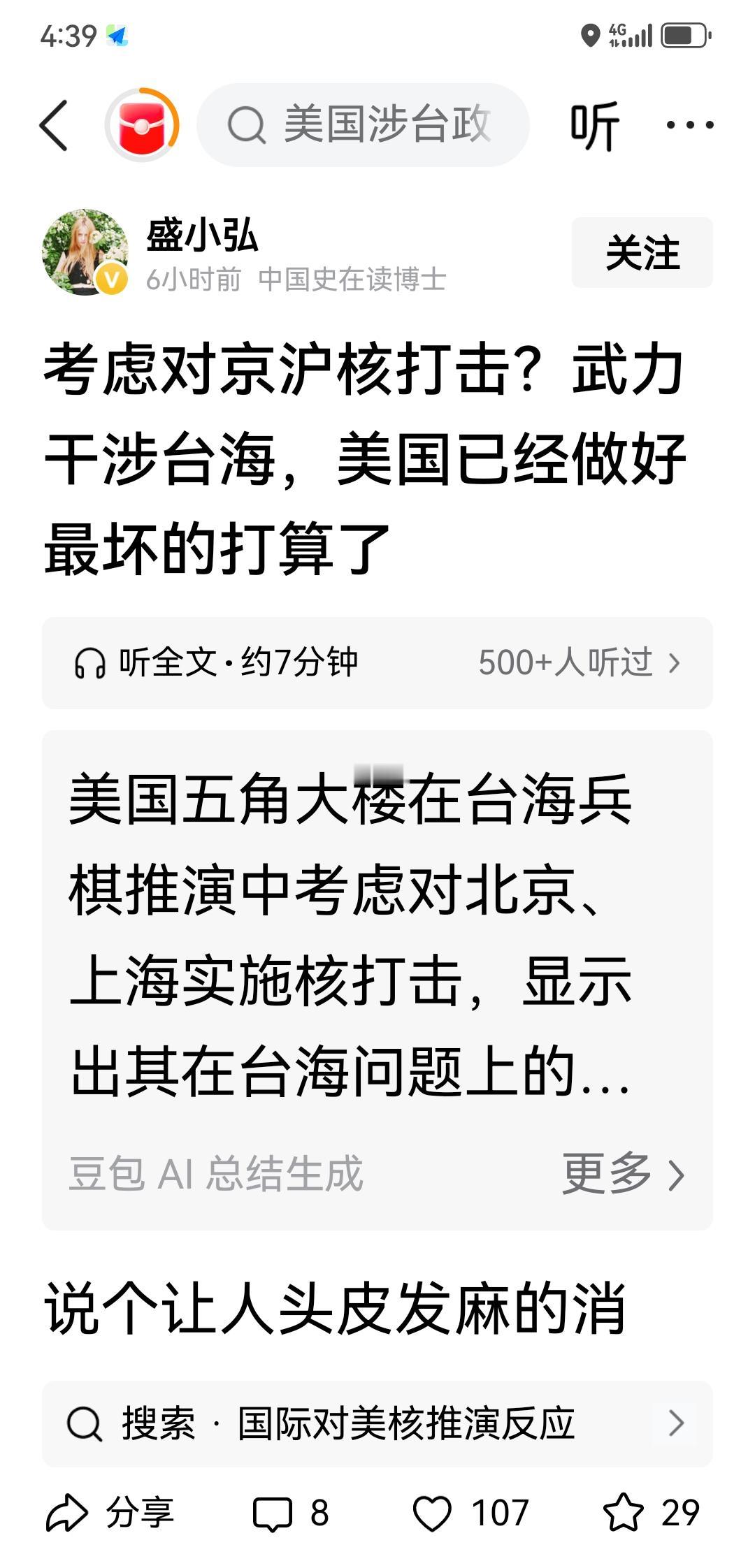 推演背景和核心假设是美军介入台海冲突,常规战惨败(数日内损失3 - 4艘航母、数万士兵伤亡)。美军计划先发制人,对中国政治中心(北京)、经济中心(上海)实施核打击。美方认定,中国不会核反击美国本土(如华盛顿、纽约),只会攻击亚太美军基地或日韩菲等盟友。