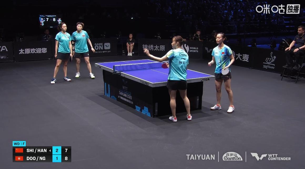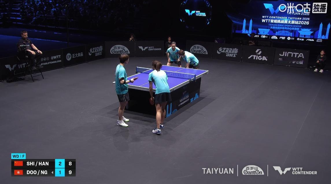 中国女双组合石洵瑶/韩菲儿3-1战胜香港组合杜凯琹/吴咏琳,