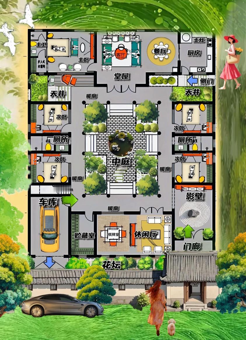 爱讲人情世故的合院,438㎡含金量最高是四道门,诠释了,通透是金,动线是银 ,布局上看,最有魅力的自建房!