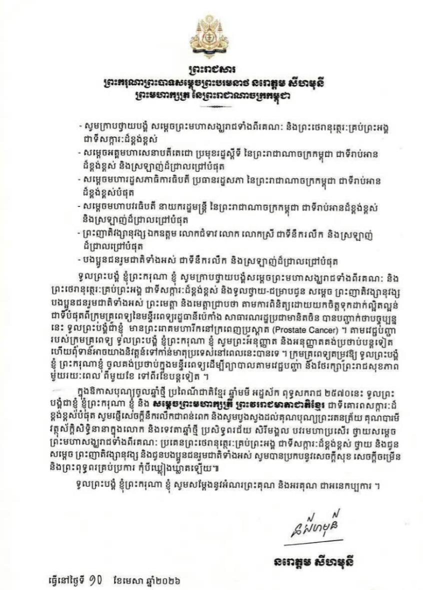 4月10日,柬埔寨王室发布了一纸公告,说他们敬爱的西哈莫尼国王确诊了前列腺癌,现在正留在北京治病。
