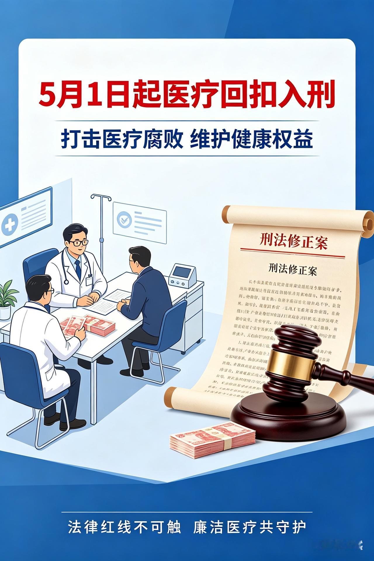 5月1日起医疗回扣正式入刑 ! 长期以来,药品器械购销中的回扣问题屡禁难止,处方