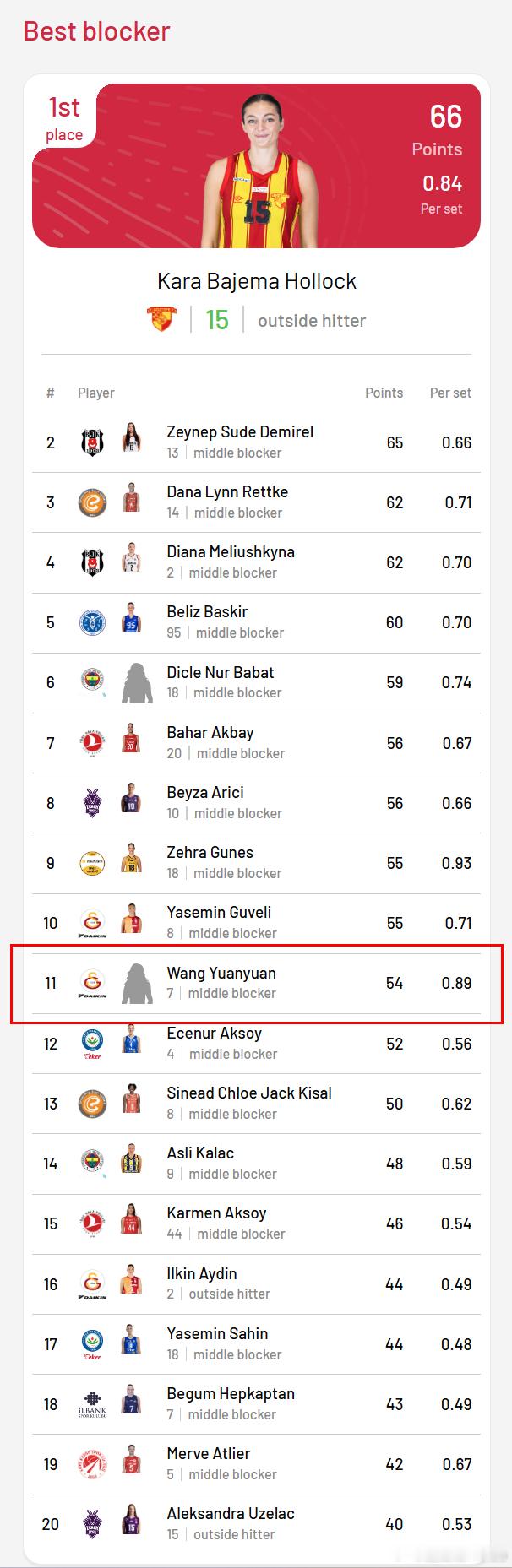 排球 王媛媛留洋第一季 🌟 今天的拦网又是高光表现的一场!王媛媛个人8拦,助加拉塔萨雷在土超5-8名交叉赛第二回合中五局胜出,两回合均战胜土耳其航空,从而进入5/6名争夺战。还有最多的三场比赛,王媛媛将结束本赛季的土耳其征程。凭借本场比赛的8个拦网,在拦网得分榜,很大希望晋级前5。继续加油!🌟