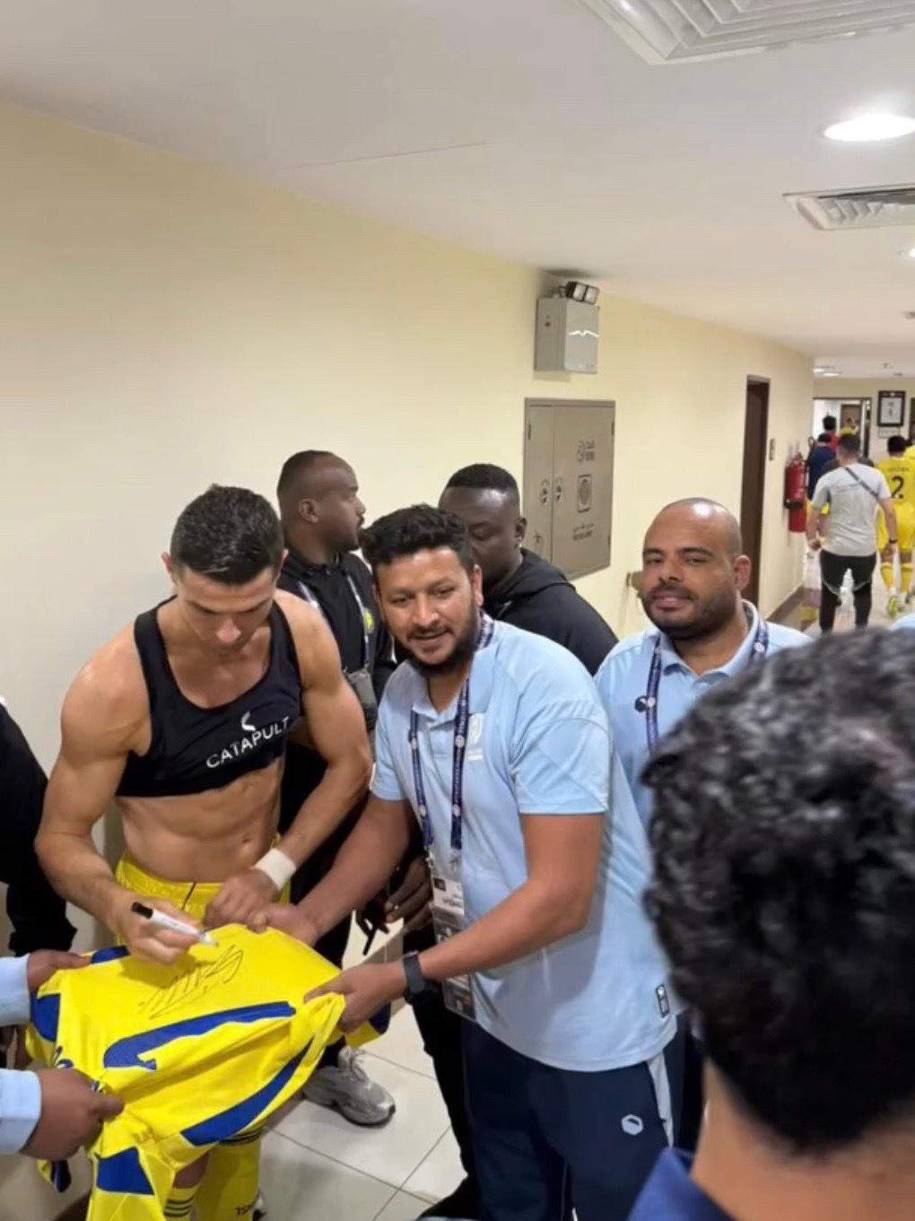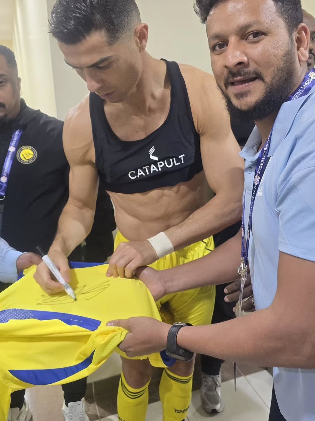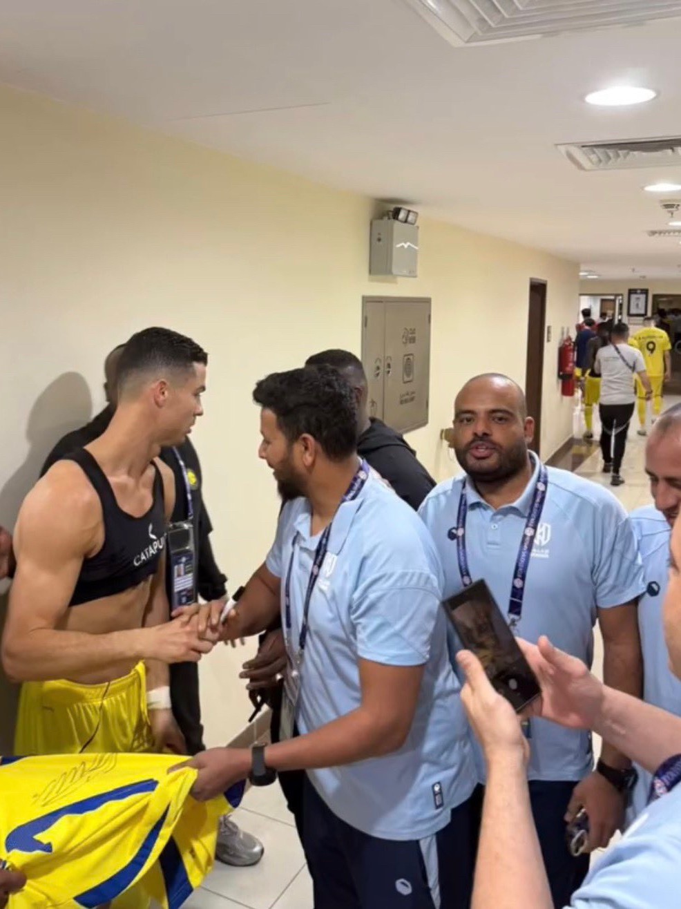 就这么被阿科多俱乐部的工作人员拦下来要落场球衣以及签名阿科多0比2利雅得胜利
