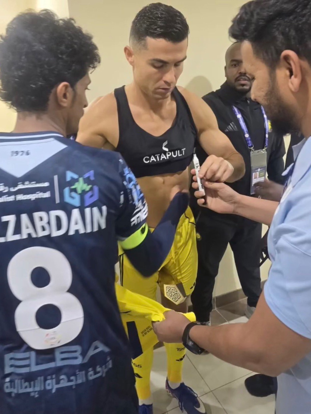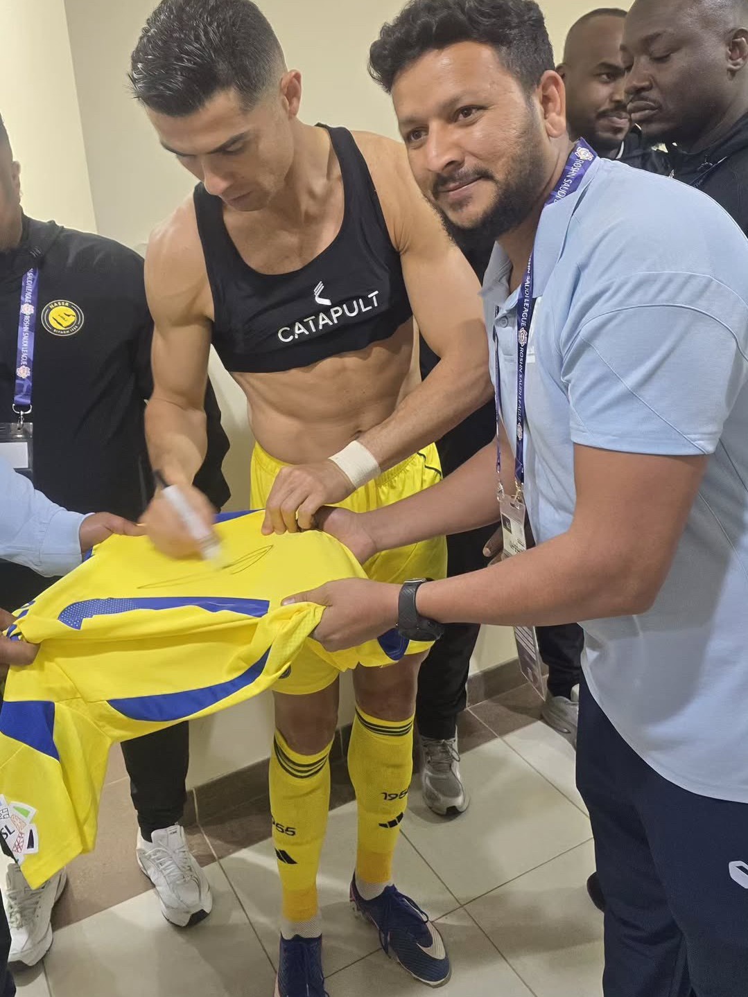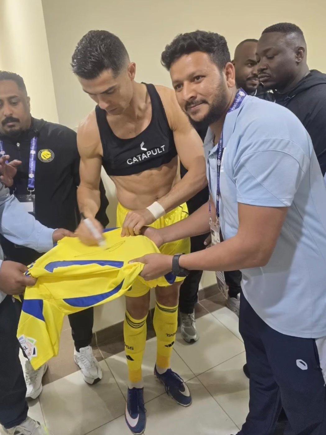 就这么被阿科多俱乐部的工作人员拦下来要落场球衣以及签名阿科多0比2利雅得胜利