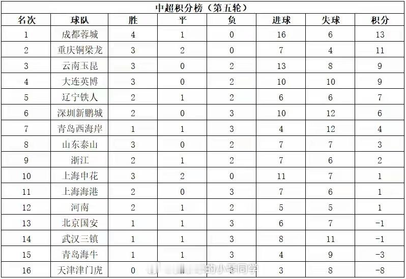 北京时间4月12日,在刚刚结束的中超联赛第5轮焦点战中,北京国安主场与成都蓉城激战90分钟。上半场两队均无建树,战成0-0。下半场费利佩进球因越位被吹,张玉宁头球破门,廖力生扳平,韦世豪补时绝杀,最终成都蓉城2-1取胜夺回积分榜榜首,国安5轮过后负分仍旧难以清零。至此,中超联赛第五轮比赛全部结束,成都蓉城客场击败北京国安,继续稳居榜首;大连英博排在第四位,单轮排名再创新高。具体积分榜如下前4轮,成都蓉城的3胜1平进14球失5球,领跑中超积分榜。球队稳定的发挥、超强的攻击力不断提升球迷的信心与期望值,大家都期待球队在新赛季能够持续领跑,最终夺得2026赛季中超冠军,证明“金牌球市”不仅有对足球的热情,更有超强的职业竞技水平。本场比赛虽然在周日晚进行,但无碍成都球迷热情前往。与此同时,比赛也吸引不少在京工作、学习的成都人购票观看。本场比赛是第5轮最晚开赛的两场之一。北京国安在夺得超级杯后,联赛开局表现不佳,前4轮仅取得1胜1平2负。而重庆铜梁龙昨日取胜后暂登榜首,这进一步激发了成都蓉城的求胜欲。历史交锋上,成都蓉城自2024年9月以来对国安保持3场不败,但上次在工人体育场获胜已是2023年10月。新一次的对决,成都蓉城期待连胜领跑,而北京国安则盼望触底反弹,一举摆脱负分的尴尬。除此之外,成都蓉城主教练约翰·阿洛伊西与北京国安主教练蒙哥马利也是老熟人,两人带队在澳超联赛多次交手,蒙哥马利3胜1平保持不败。与上轮5:1主场大胜青岛西海岸相比,约翰·阿洛伊西对首发11人唯一的调整就是用茹萨替换廖力生。上轮比赛替补登场上演“大三元”的费利佩依旧在替补席待命,而蒙哥马利也让张玉宁替补,双方都期待下半场出奇制胜。强强对话火星四溅,双方球员身体接触不断。开场仅仅1分多钟,塞尔吉尼奥就铲倒了韦林顿·席尔瓦。成都蓉城在比赛第3分钟创造绝佳破门良机,可惜,王子铭近距离包抄踢空错失空门。第13分钟,恩科洛洛放铲韦世豪,韦世豪随即因就地反抢犯规领到本场比赛第一张黄牌。第26分钟,胡荷韬左路传中,韦世豪头球攻门稍稍高出横梁。整个上半场拼抢激烈,但双方都未能创造太有威胁的进攻。蓉城频频袭扰国安防线,创造了几次射门,但同样与进球失之交臂。半场结束时,比分仍为0:0。下半场双方不约而同换人,北京国安用张玉宁换下了上半场右腿肌肉拉伤的法比奥,而成都蓉城则用费利佩换下了王子铭。第53分钟,张稀哲原地扣球后射门,被刘殿座扑出。仅仅2分钟后,成都蓉城就换以颜色,费利佩接韦林顿传球头球破门,不过被判越位在先,进球无效。第57分钟,韦世豪接费利佩做球射门,被侯森扑出。费利佩上场后,大幅提升成都蓉城前场攻击力。比赛第63分,北京国安的调整终于见到成效,替补登场的曹永竞右路传中,后点无人盯防的张玉宁头槌破门,将场上比分改写为1:0。第76分钟,约翰·阿洛伊西用王东升和廖力生对位换下贺一然、茹萨。连番反攻,第84分钟终于取得了成效,韦林顿·席尔瓦开出角球,索罗金摆渡后,韦世豪射门打在廖力生身上进球,成都蓉城将比分扳成1:1平。