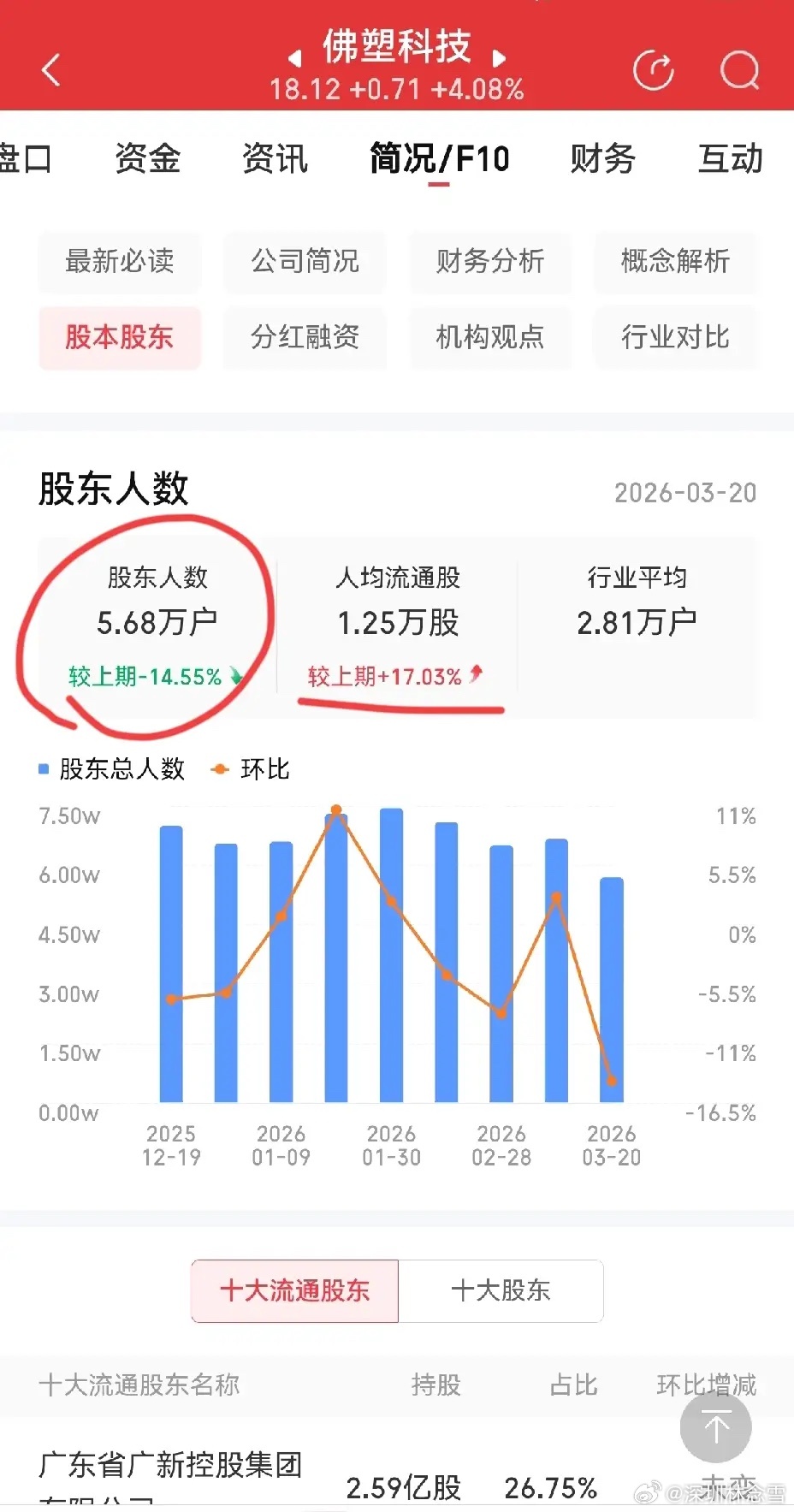 佛塑科技三连阳后三连阴,随后窄幅横盘5日不跌,盘面暗藏韧性。截至3月20日,股东人数大降14.5%、人均持股猛增17%,筹码正快速向主力集中。