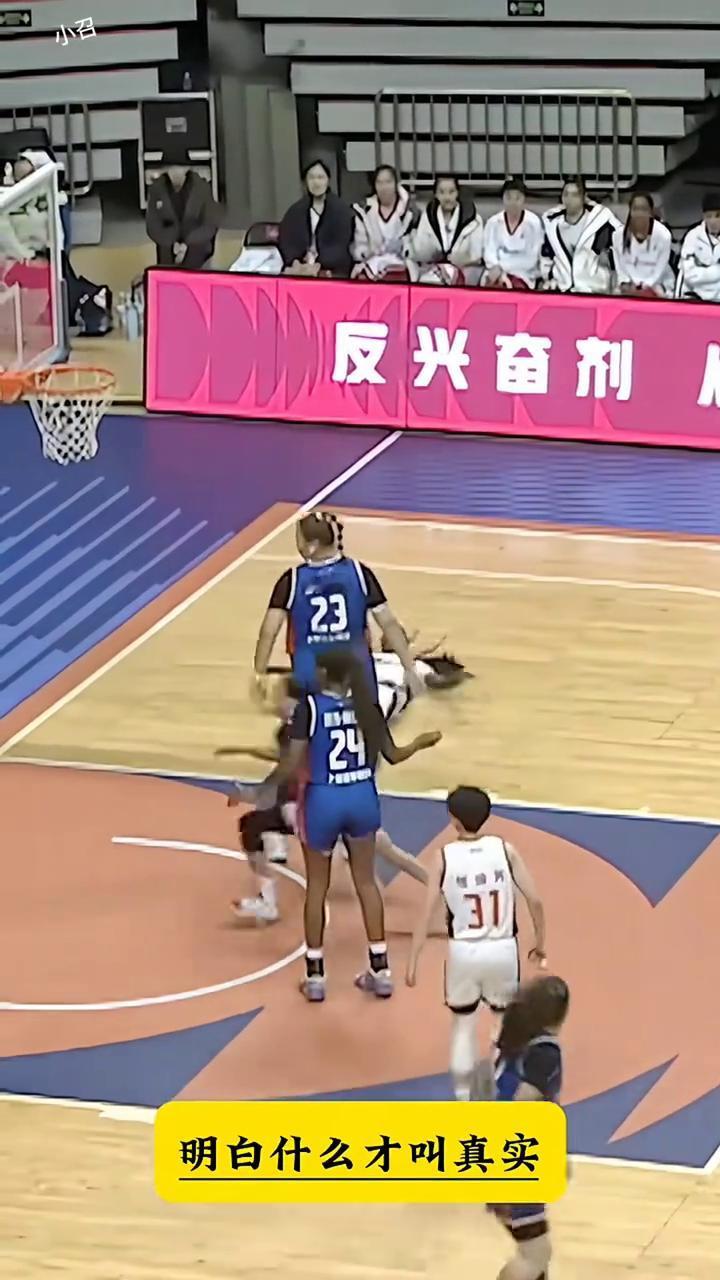 大宝贝的球衣是23号,记不住也没关系,毕竟大宝贝在女篮就是独一份,连人带球一起打倒。这就是大宝贝的盖帽,对手还不怎么服气,想偷袭大宝贝,一招肉蛋葱鸡让你明白什么才叫真实。