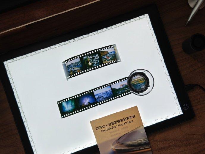 相机新生,口袋哈苏。 Find X9 Ultra的外观也都解禁了,邀请函也到了。 这次邀请函是一块灯板还有胶片,点亮灯板放上胶片,这个感觉,太舒服了 还有一个放大镜,尽览细节。这次X9U还有新的哈苏胶片风格滤镜? 21号见。
