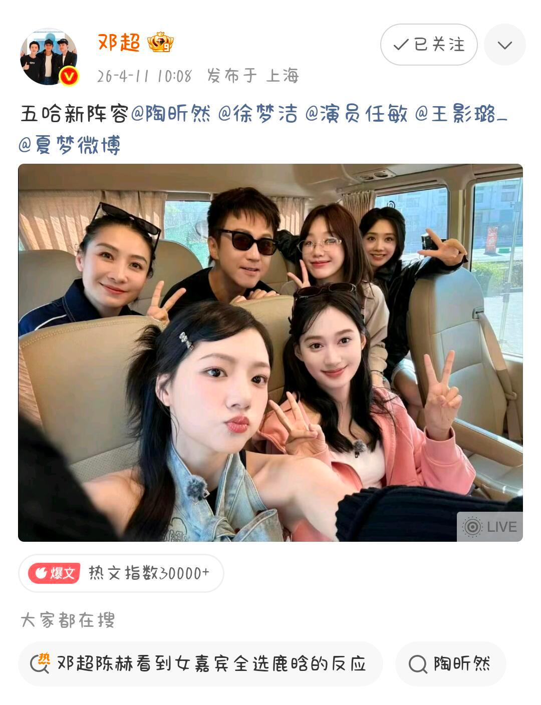 邓超每逢拍照必嘬腮(超昕梦敏璐夏合照版)很帅啊,九妹也是少女哈哈哈哈哈 |