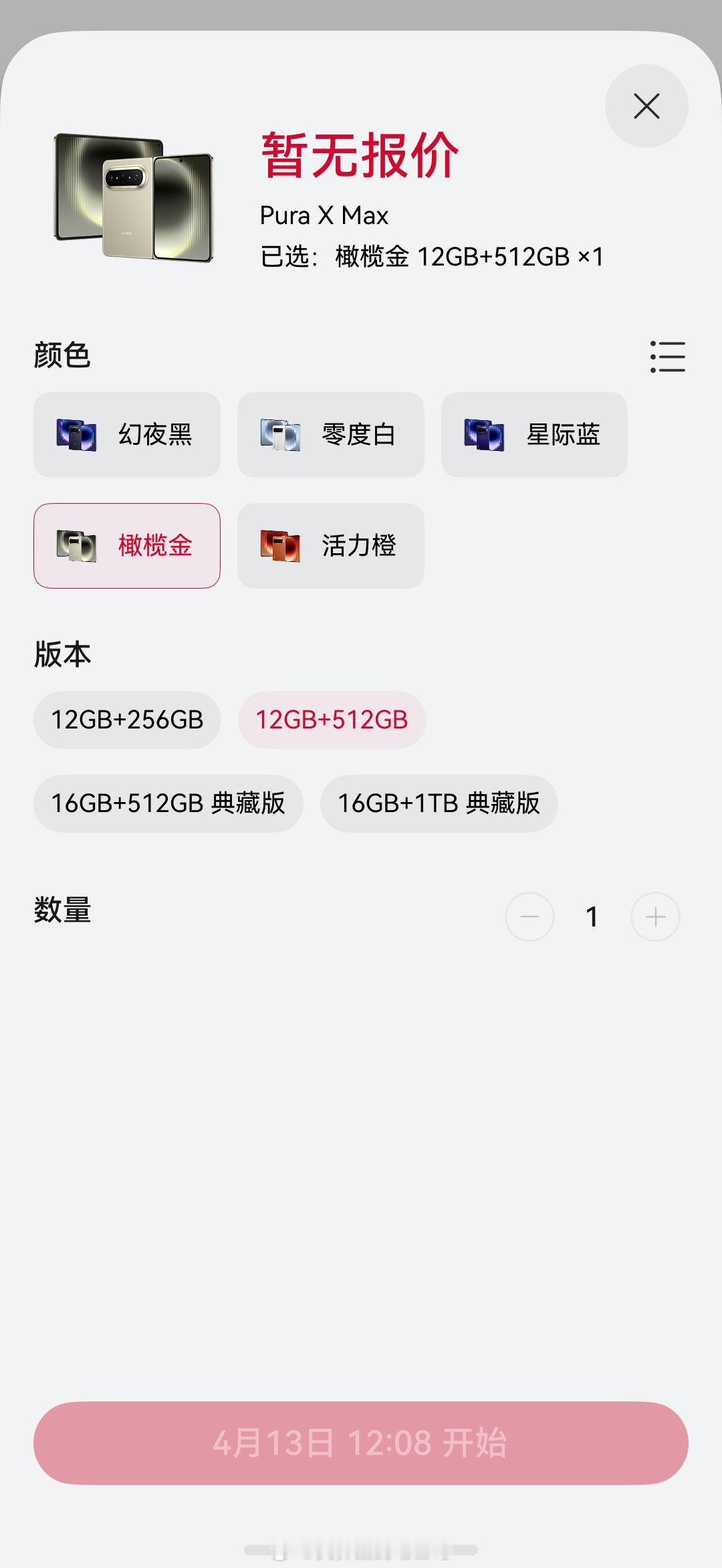 华为PuraXMax今日开启预订 估计备货比较充足,价格不会低,估计万元起了,接近大折。5款配色,你选哪个?