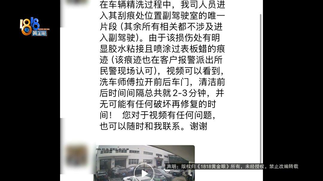 他们调取了监控录像,表示车子在店里精洗时,洗车师傅只打开了右前门几分钟。