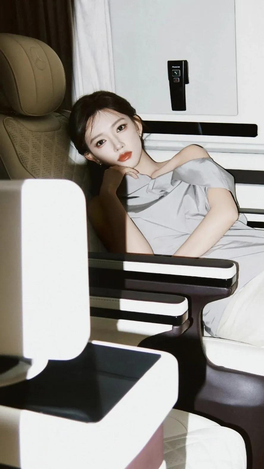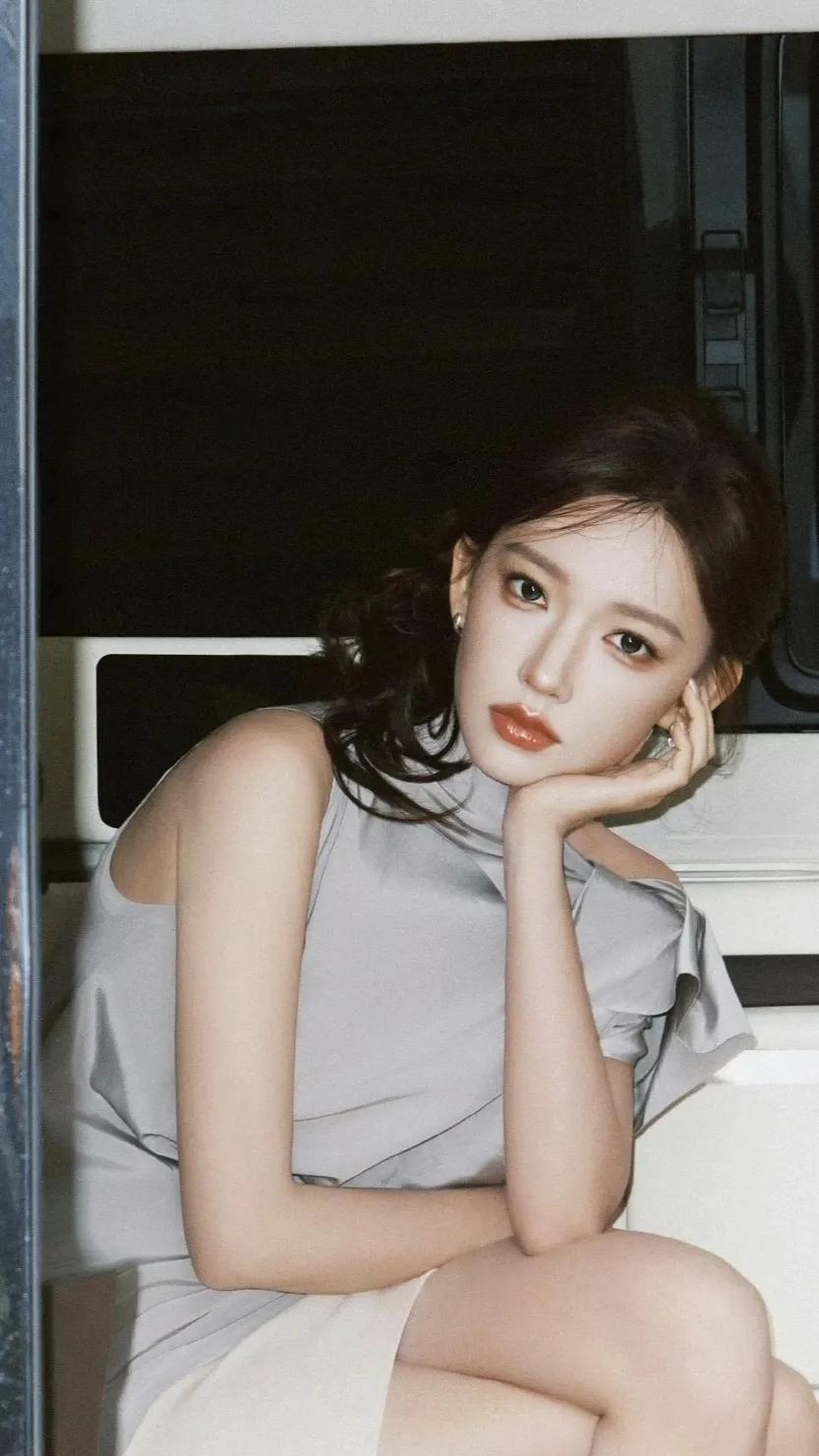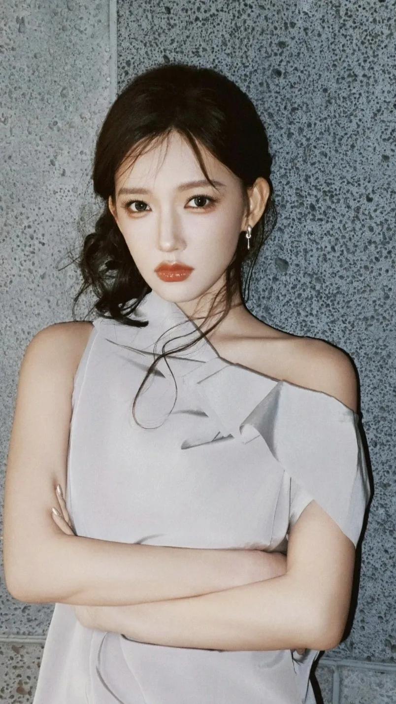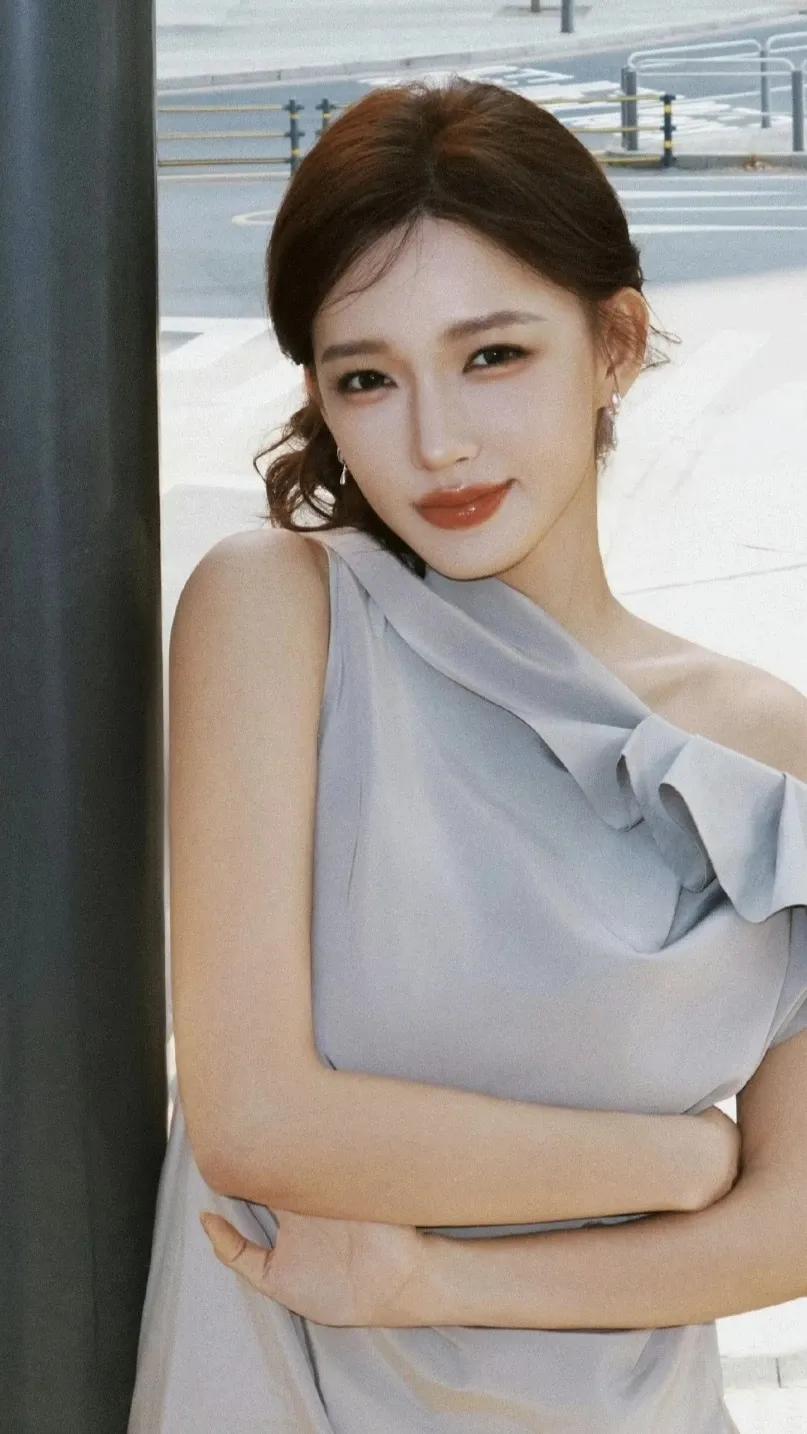美女壁纸~程潇,灰调斜肩缎面裙自带清冷质感,慵懒卷发搭配清透红唇妆,在不同场景里演绎多面魅力