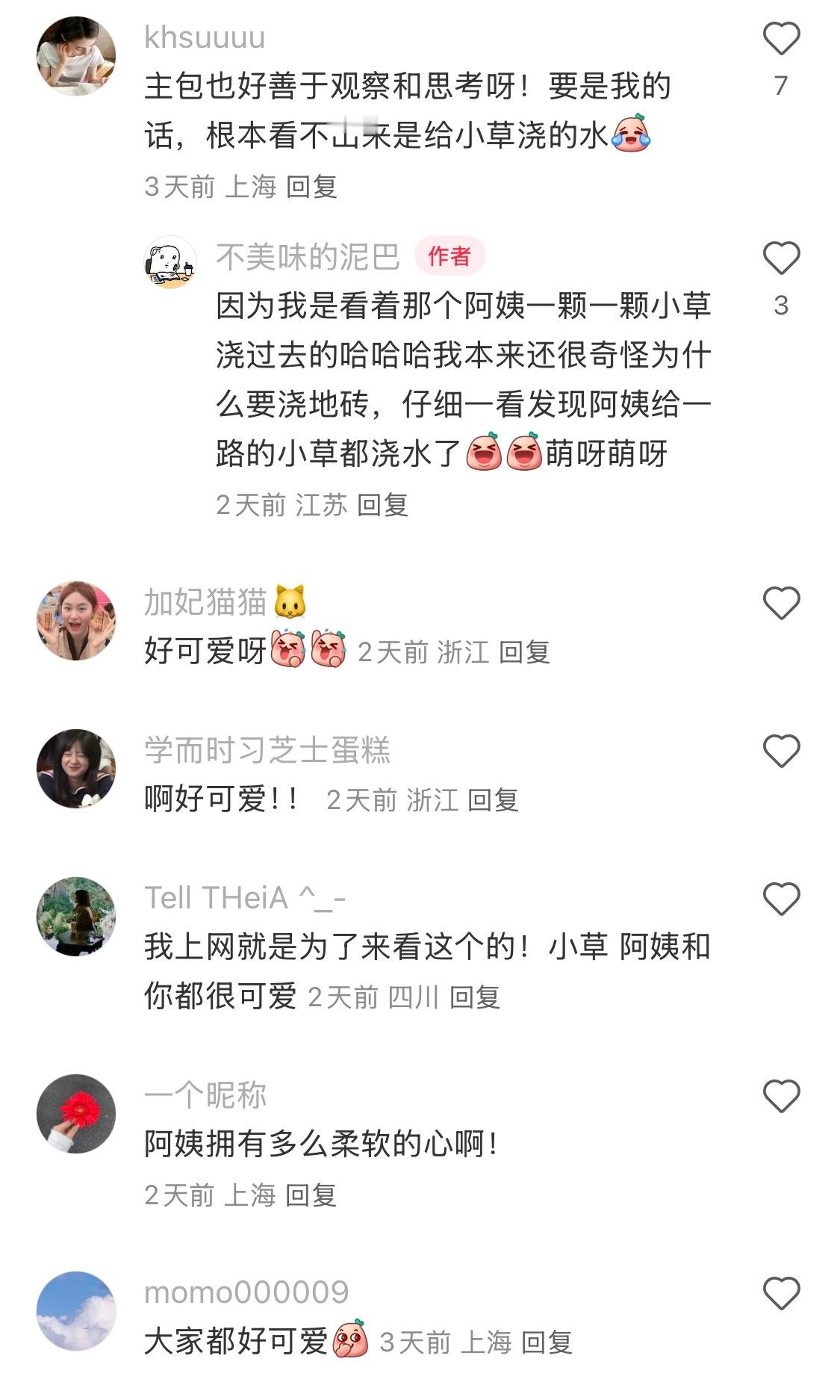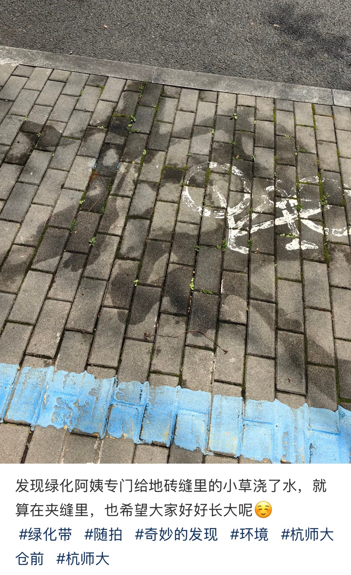 绿化阿姨给砖缝里的小草浇了水