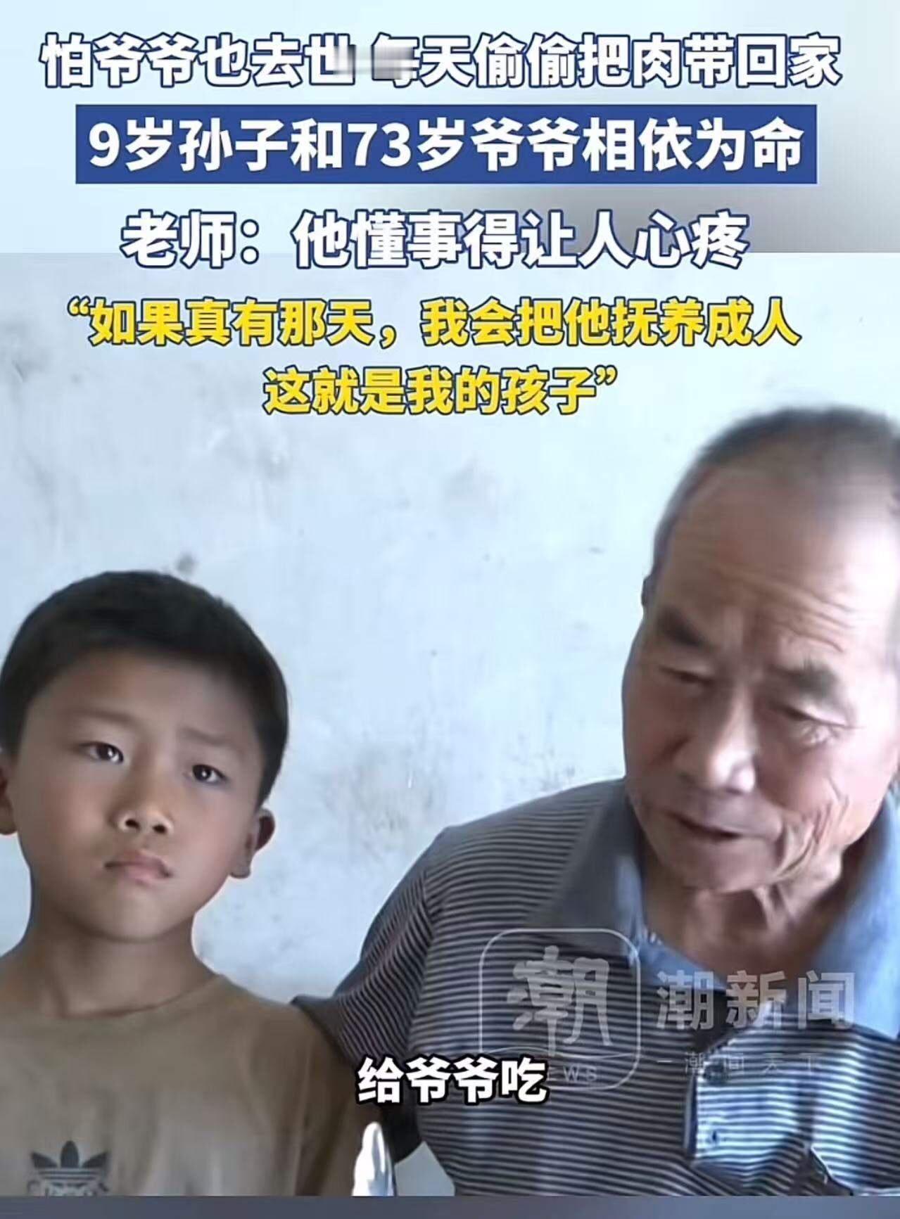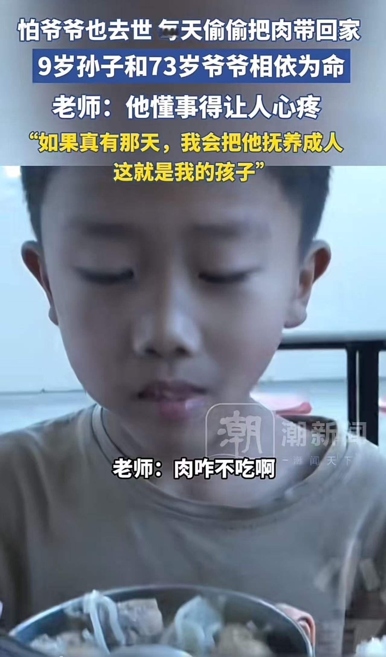 看哭全网!9岁男孩每天偷偷把肉打包带回去。老师发现后问他为什么不吃?没想到孩子说:“爸爸去世了,妈妈改嫁了,奶奶也去世了,我怕爷爷也没了,所以把肉带回去给爷爷吃……”