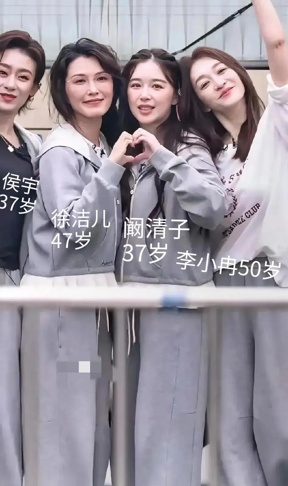 看这组合影,我信了群众眼睛是雪亮的,50岁李小冉是年龄最长的,确是最显年轻的。