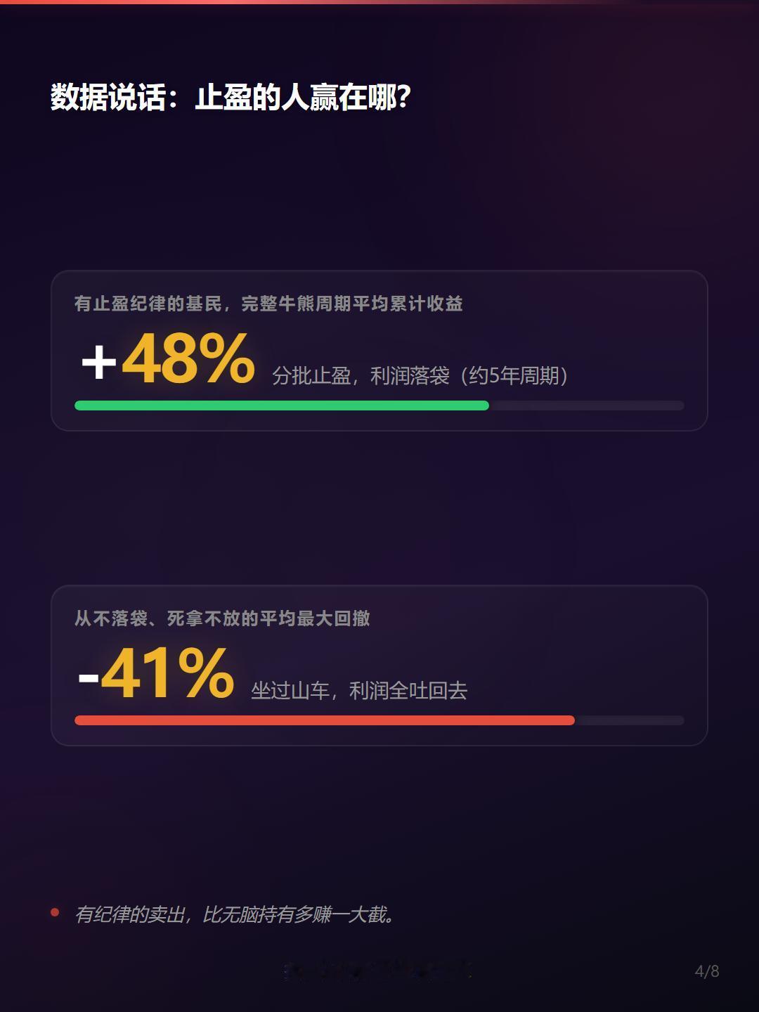 ✅ 有止盈纪律的基民,完整牛熊周期累计收益平均 +48%(约5年)