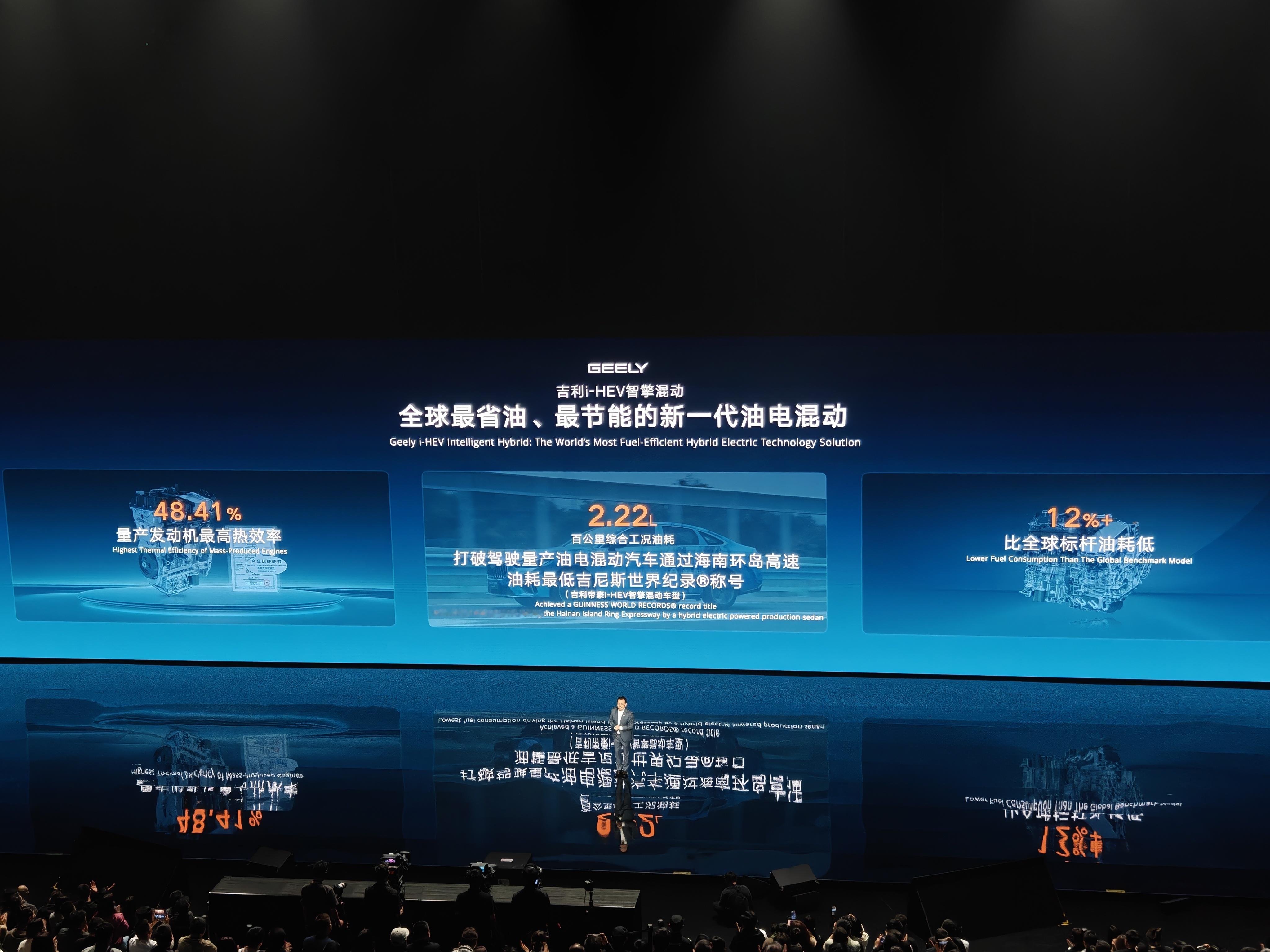 吉利i-HEV各种“最”。最高热效率48.41%,量产电混汽车最低2.22L百公