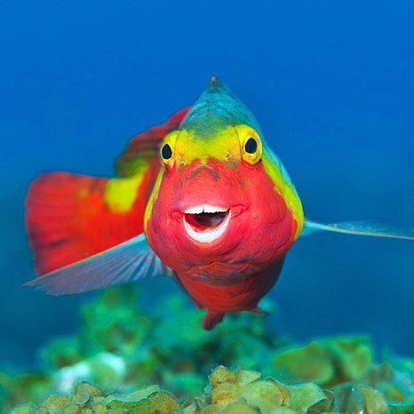 友好的小珊瑚鱼似乎对着镜头 “微笑”。