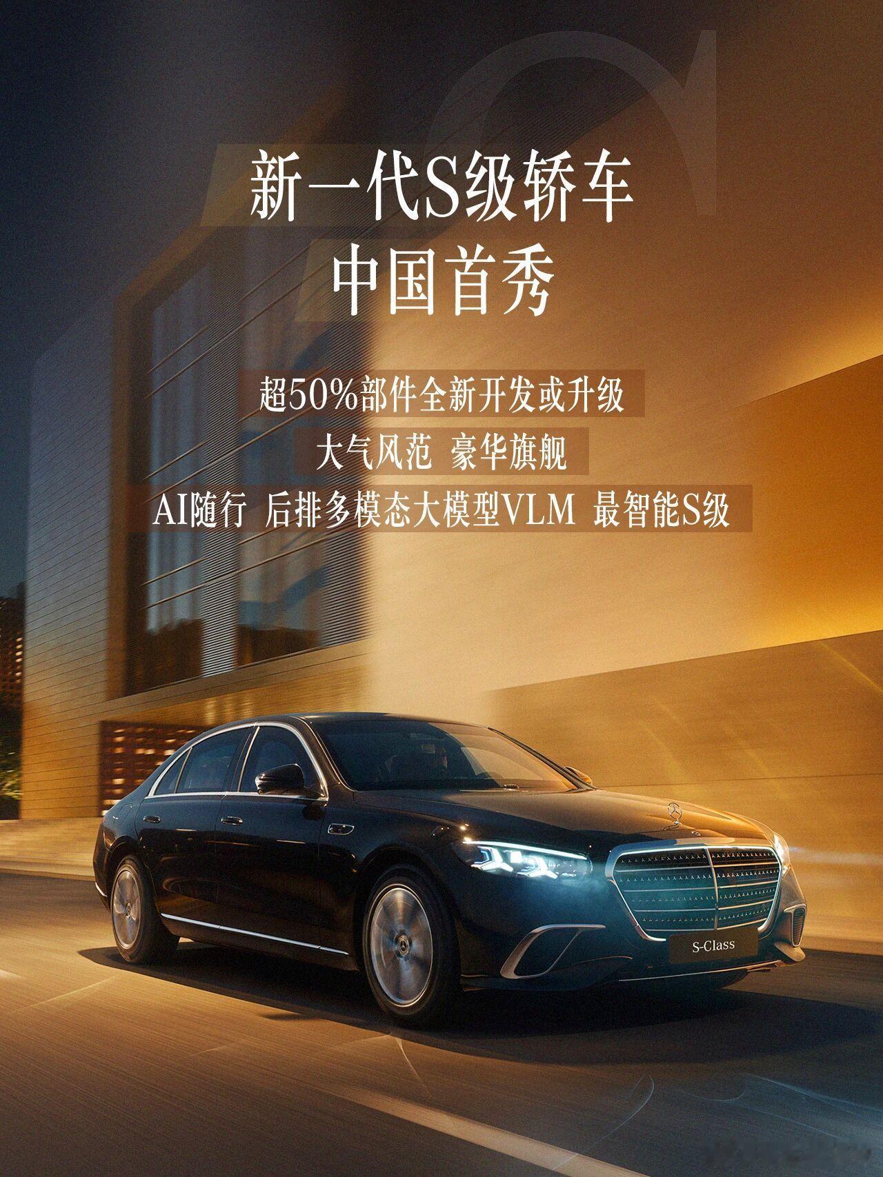 新一代S级轿车中国首秀🔸大气风范,尊享进阶🔸AI虚拟助理更有“情绪价值”,专为中国市场打造城区及高速领航辅助驾驶🔸全新高端后排娱乐系统搭载端侧多模态大模型VLM,打造“最智能S级”