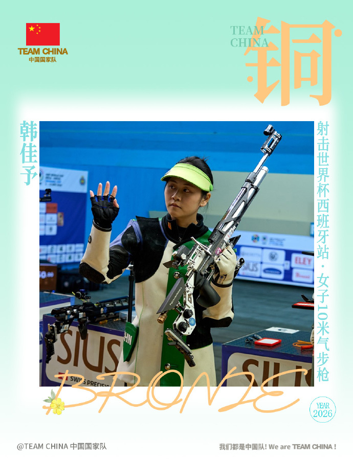 世界杯中国射击队8金历史最佳2026年4月12日,中国射击队在西班牙格拉纳达站世