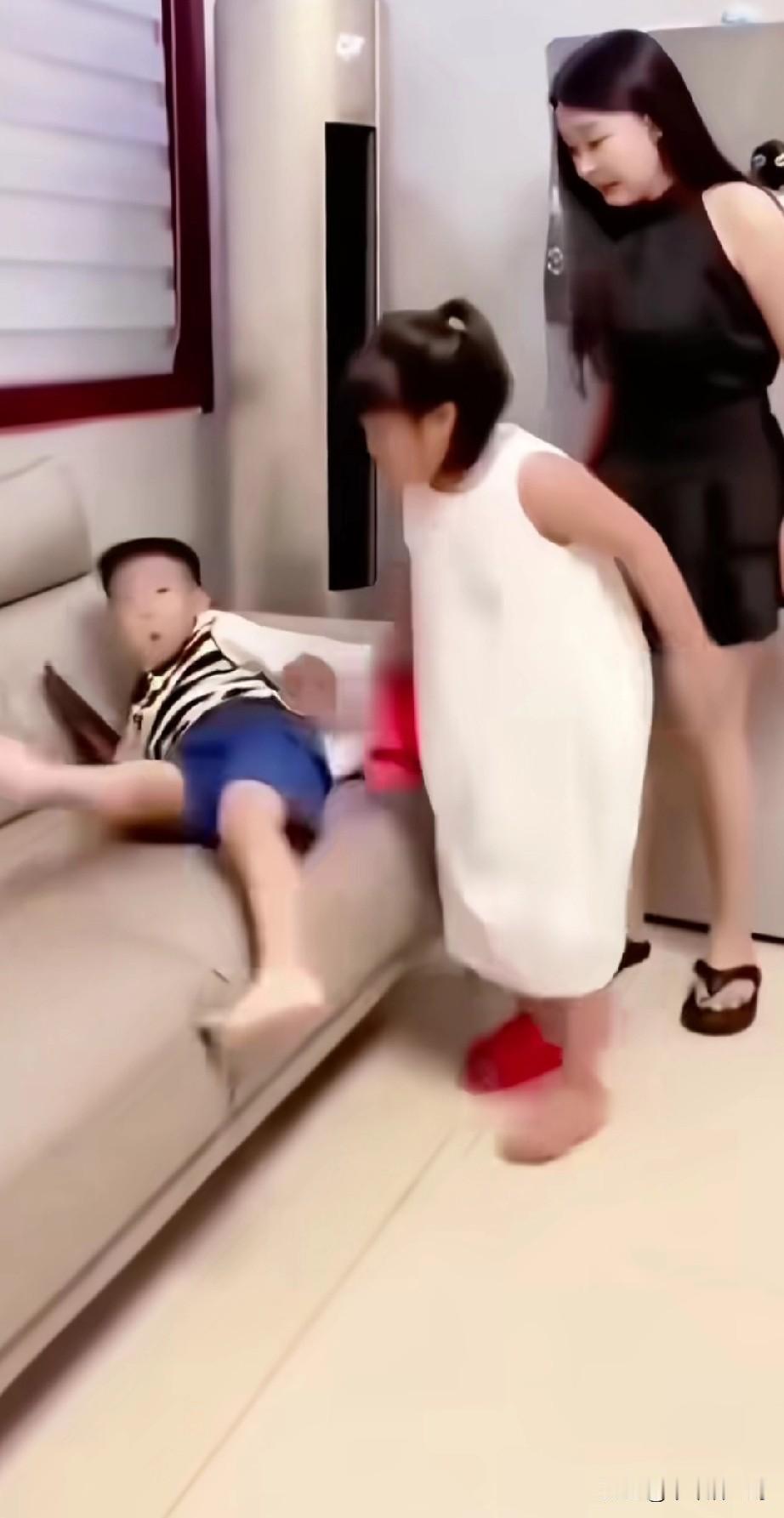 一物降一物没办法,我小时候也是这样,不怕我爸,我怕我姐,她是真打。正好孩子说的,我只是小不是傻,她是真的打啊!
