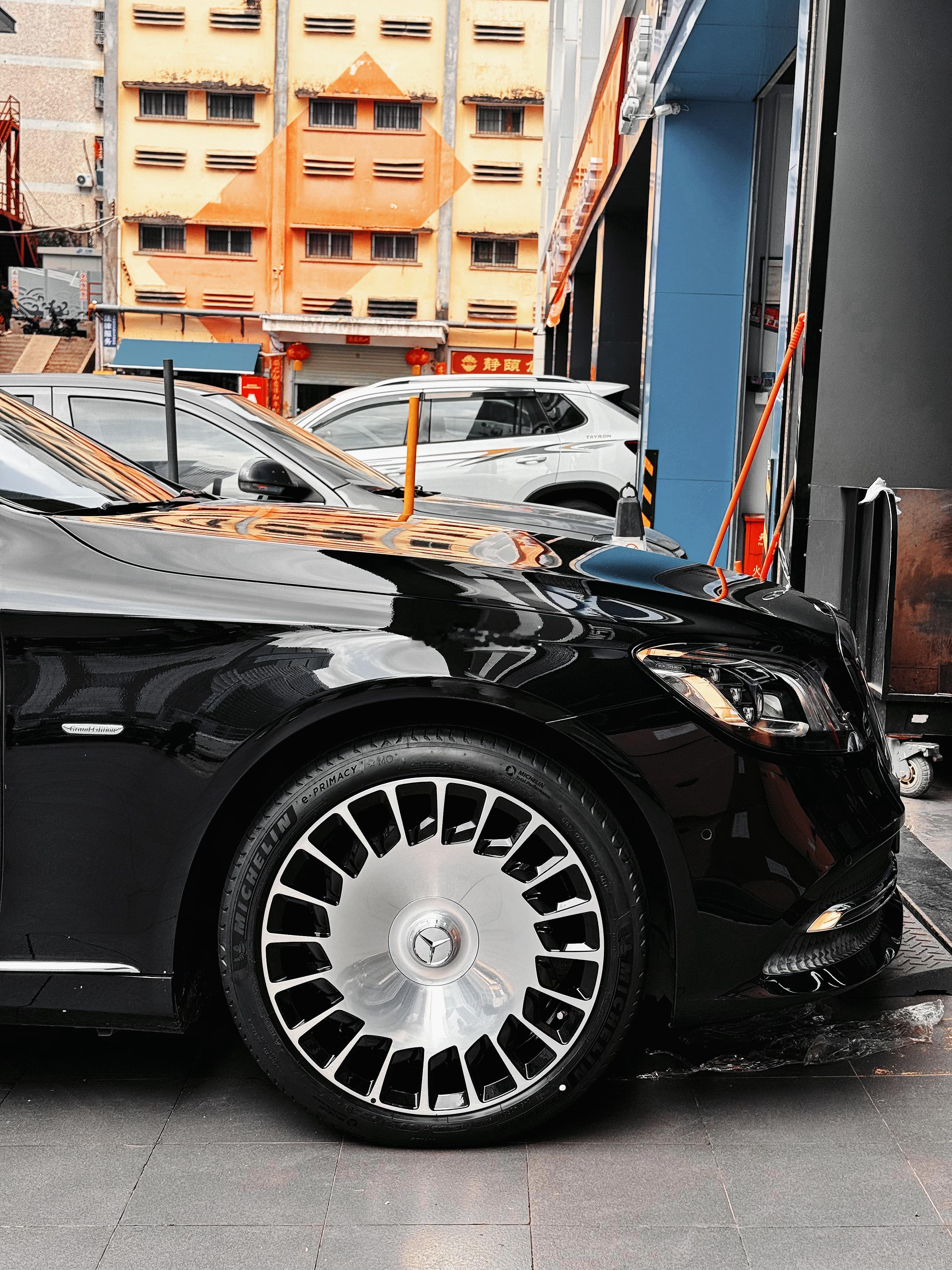 奔驰S ,完工 案例供参考 升级原厂迈巴赫 20寸锻造大饼搭配米其林轮胎,科吉动平衡性价比拉满的选择,可以跟单!