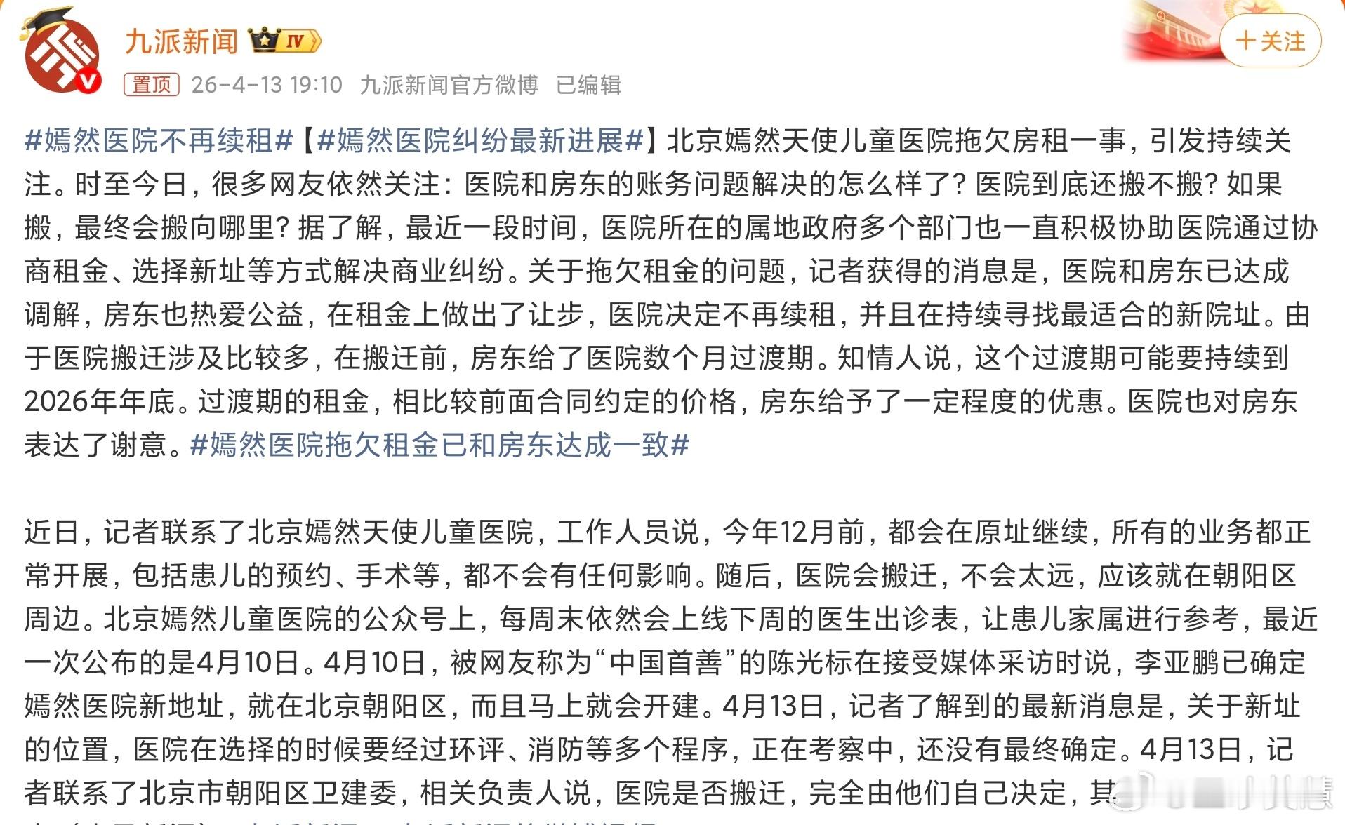 嫣然医院不再续租现在实体的生意得多难做嫣然医院的这个房东是真的不会做生意好了最后人家还是决定要搬走了12月底前的租金优惠估计也是因为舆论太大了支持李亚鹏老师选个更好的地方开展公益活动