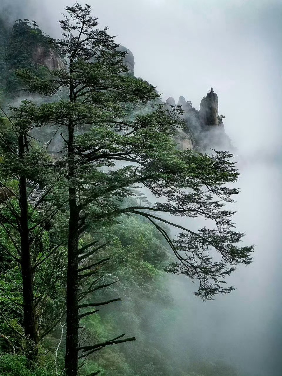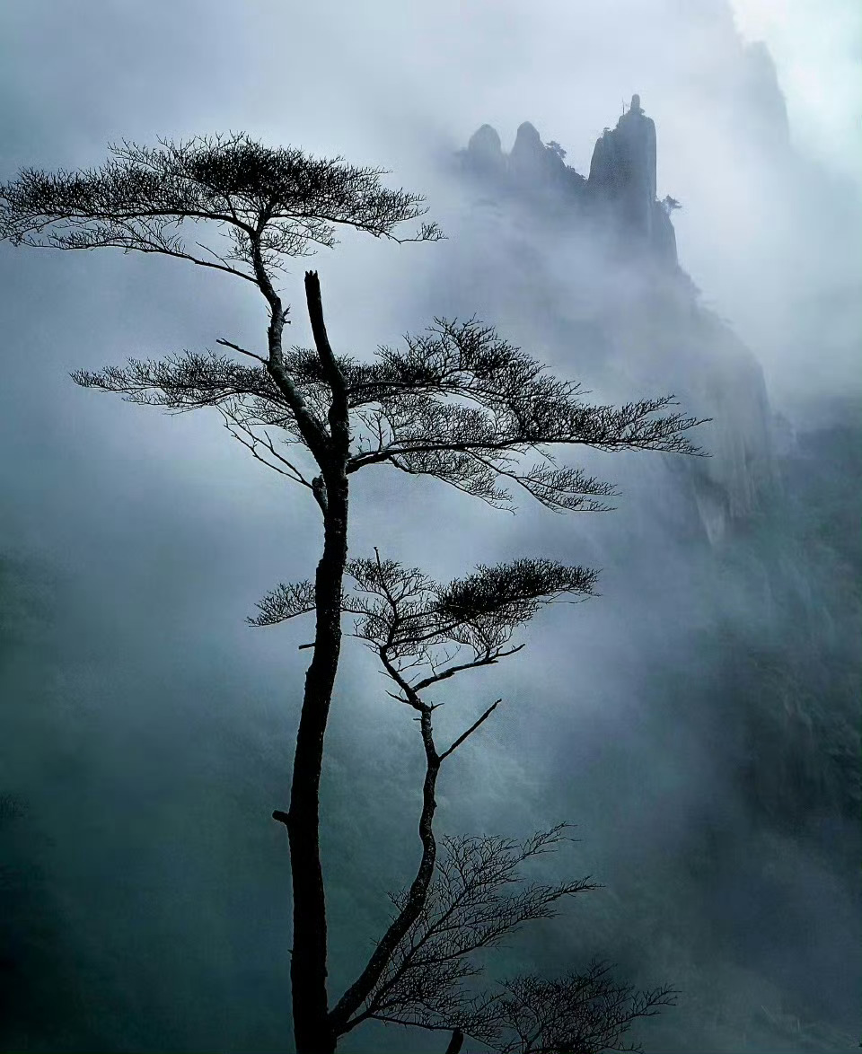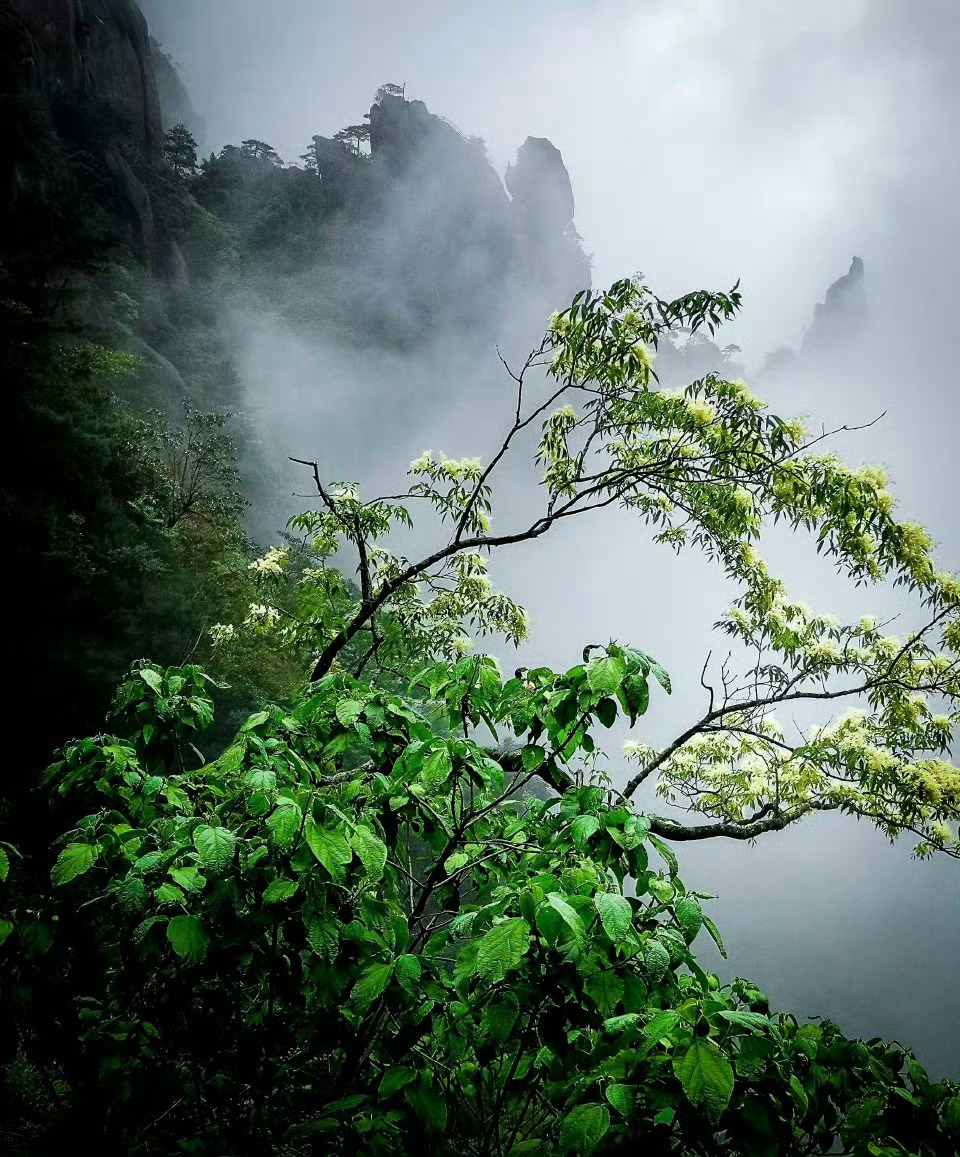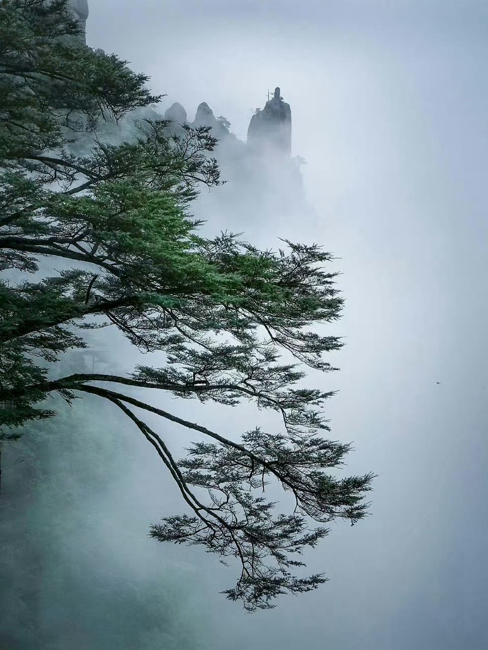 三清山不缺少雨雾的青睐,云雾给它蒙上一层滤镜,它孤清、浩荡,就如武侠景般令人参悟