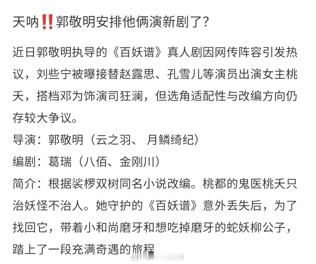 邓为粉丝又在脱粉了,还写了这么多…先别看不上百妖谱了,能不能开机不好说网传百妖谱女主刘些宁之前传的孔雪儿~刘些宁突然就被买股了,接触的都是古偶女主戏