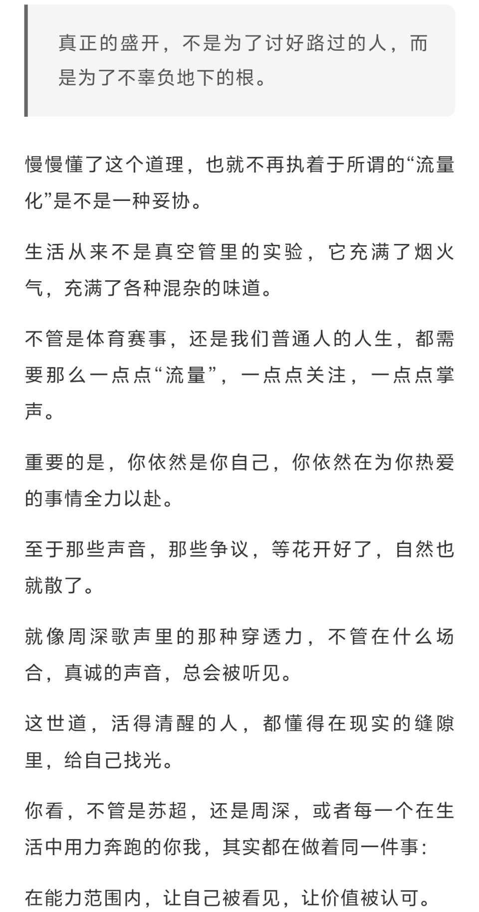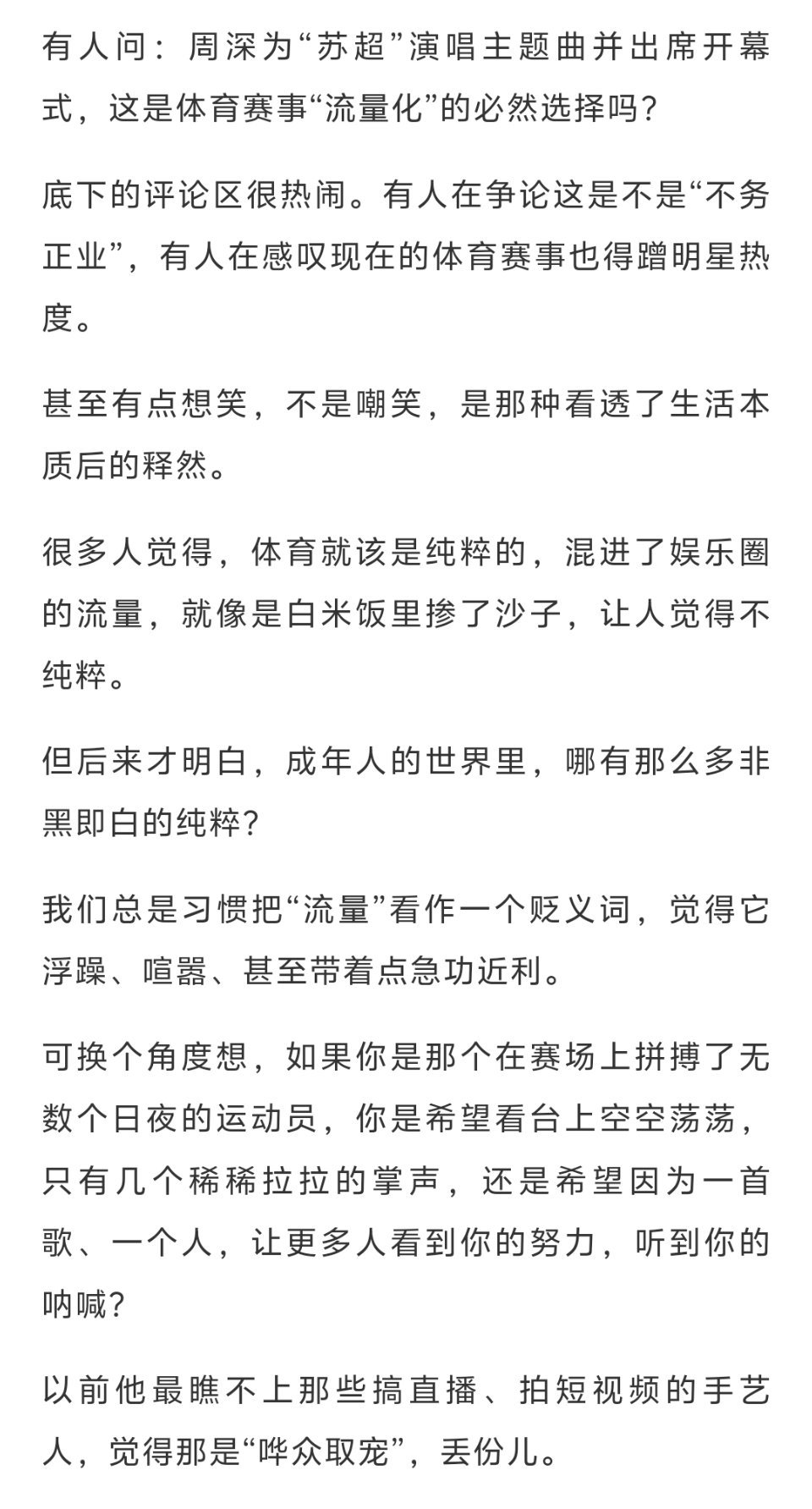 周深周深全力以赴为了心底的美好愿望周深演唱会 刷到一篇文章写周深为“苏超”演唱主题曲并出席开幕式,这是体育赛事“流量化”的必然选择吗?“苏超”作为一个地方性的体育赛事,关注度原本有限。有内容,有热血,但缺一个被看见的机会。周深 的歌声,就像是给这个默默努力的人,递过去了一支扩音器。赛事获得了关注,歌手传递了能量,观众享受了视听盛宴,这是一个多赢的局面。真正的盛开,不是为了讨好路过的人,而是为了不喜负地下的根。重要的是,你依然是你自己,你依然在为你热爱的事情全力以赴。至于那些声音,那些争议,等花开好了,自然也就散了。就像周深歌声里的那种穿透力,不管在什么场合,真诚的声音,总会被听见。在能力范围内,让自己被看见,让价值被认可。