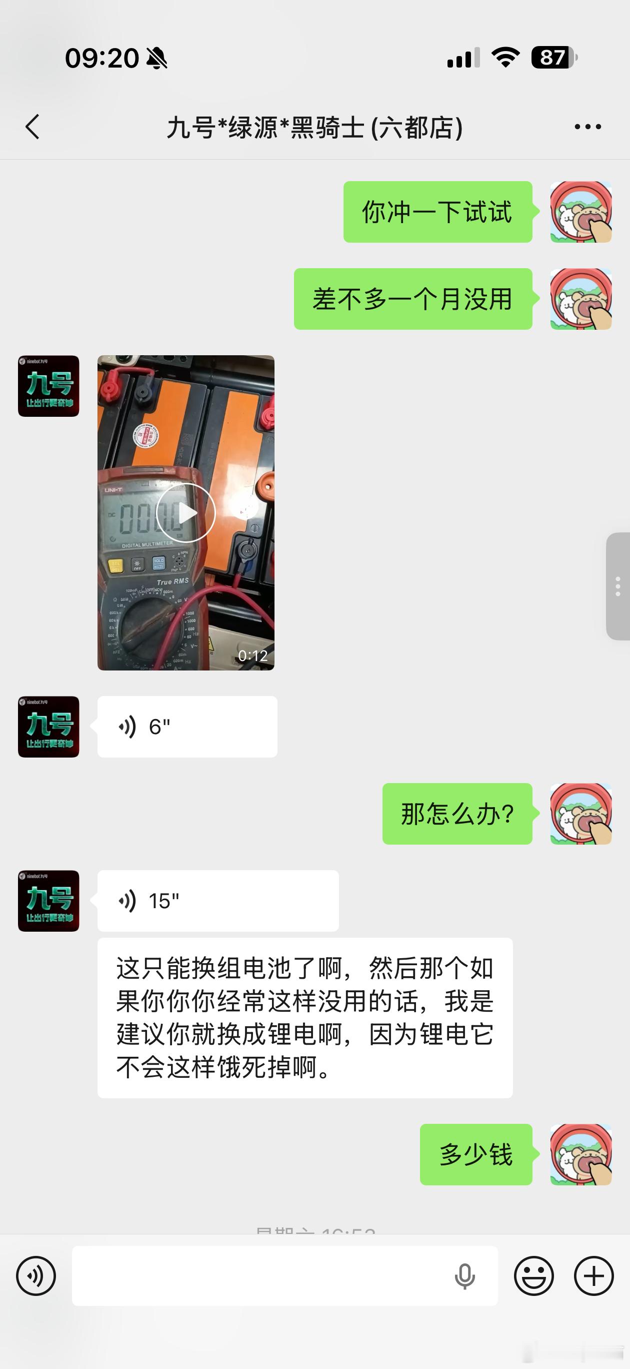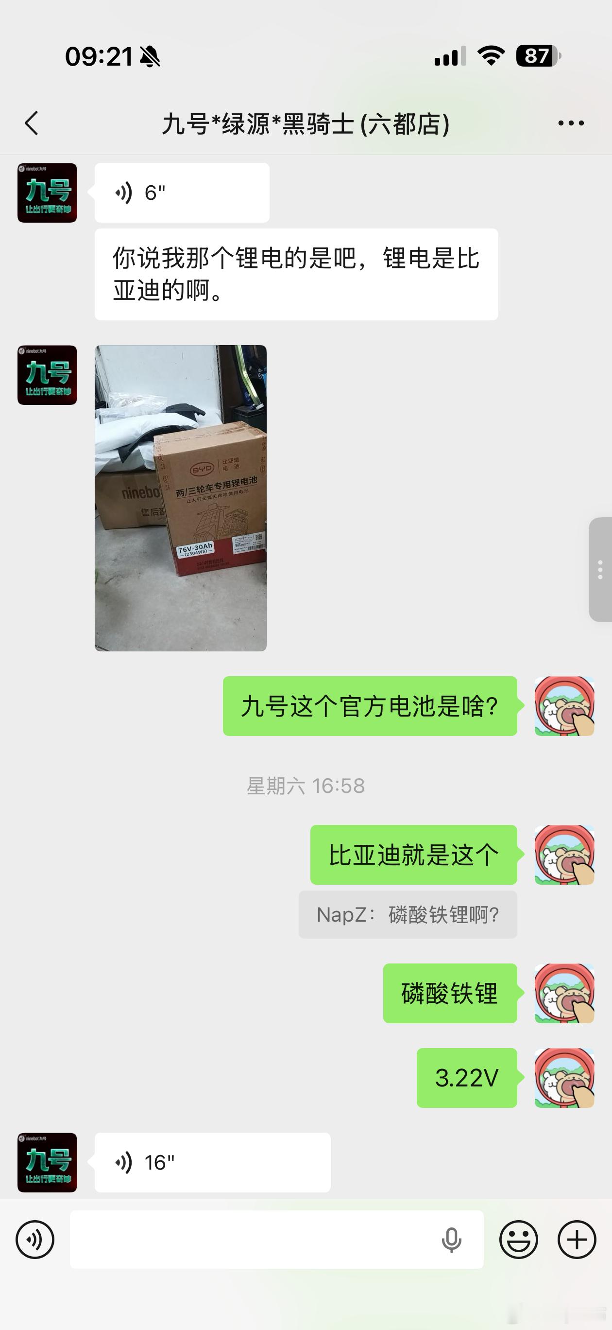 分享一个小故事,我不是九号电动车的车主嘛(之前买了一辆九号q85c)然后因为最近太久太久没骑就……没电了,然后就是一点电压都没有了我就联系了当时买电动车的老板拖过去换电池老板看了我的情况,建议我换弗迪电池……讲道理,如果说确实存在长时间不使用的情况的话锂电的自放电会比铅酸好很多很多但我还是坚持没换,其实没有别的原因主要是因为我觉得还是官方的电池还是更适配一些其他的毕竟不是官方推荐的电池官方肯定是有官方的道理的 技工组聊聊天
