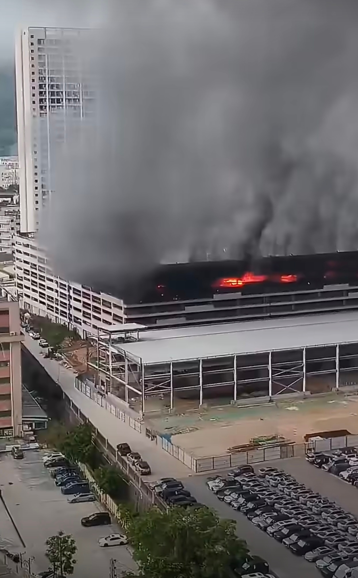 比亚迪公司起火看起来,着火面积不小呀 安全第一,赶紧灭火