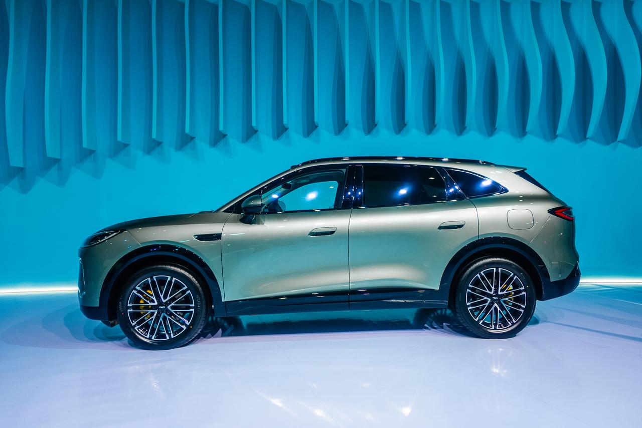风云T9L的电机也有分解模具展示,能直观看到转子轴、0.2mm超薄碳钢硅片,还有扁线电机的结构。电机转速高达26407转。又增长了见识。