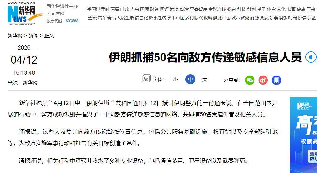 4月12日,伊朗警方突然发布通报。全国17个省份同步动手,同一时间破门抓人,一个漏网之鱼都没跑掉,一口气抓了50个间谍。